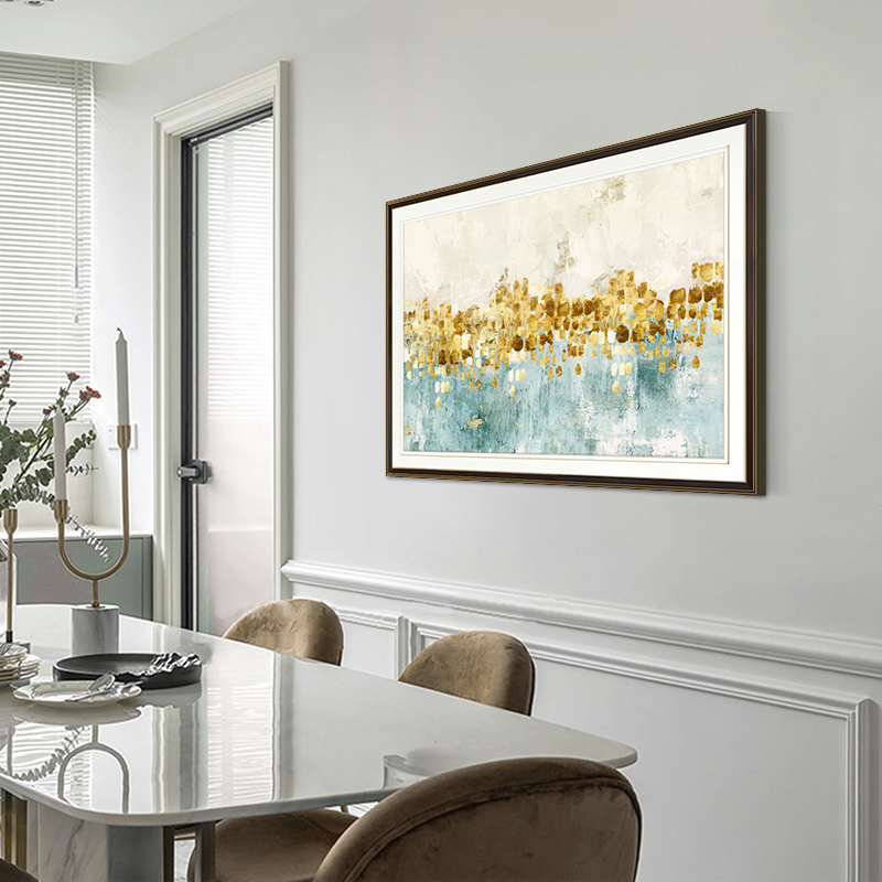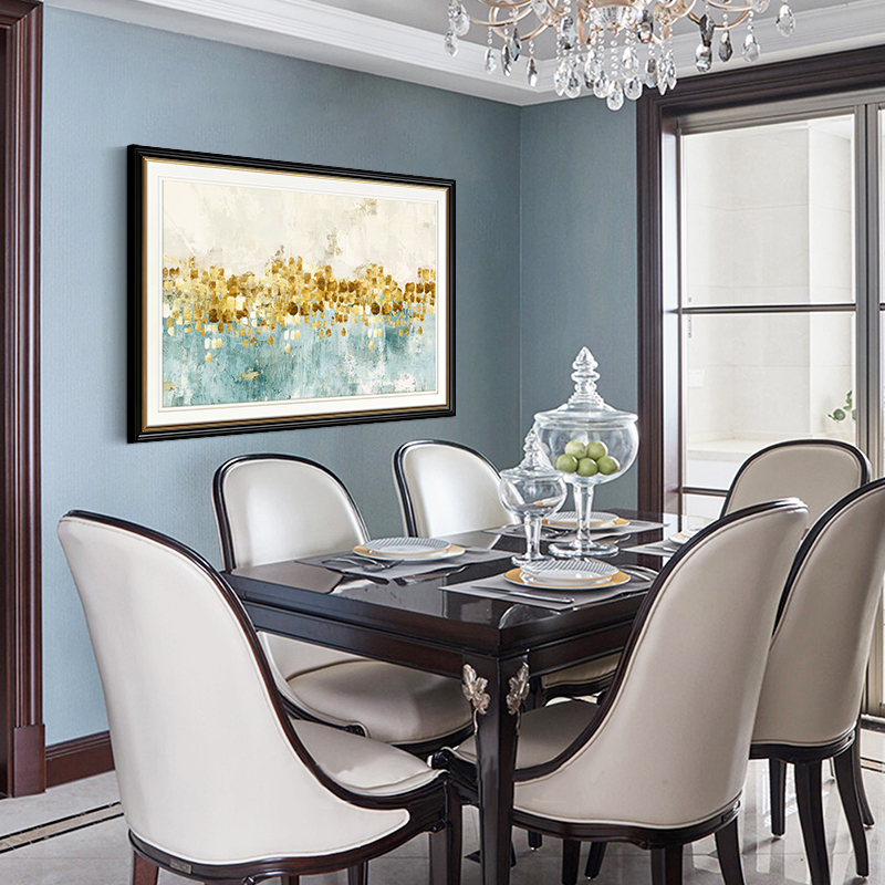 现代美式轻奢客厅装饰画法式抽象壁画金色简美挂画横幅跳舞的星星
