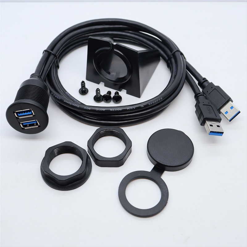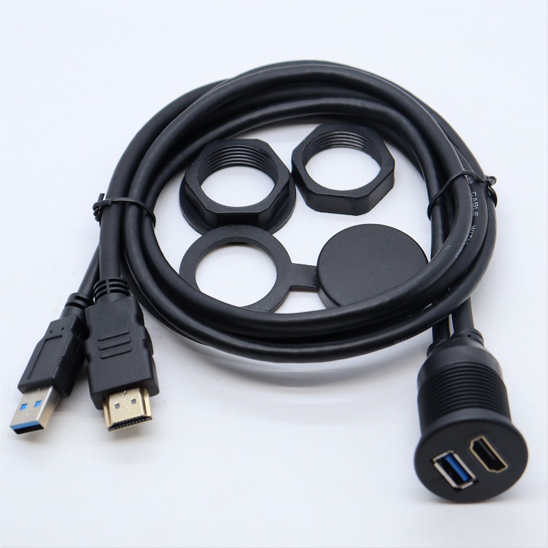 USB圆头双口双通母座转公头汽车防水线 Type-C、HDMI防水连接器