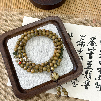 有野青青「晴色入青山」原创中式设计绿檀木禅意多圈星月文玩手串