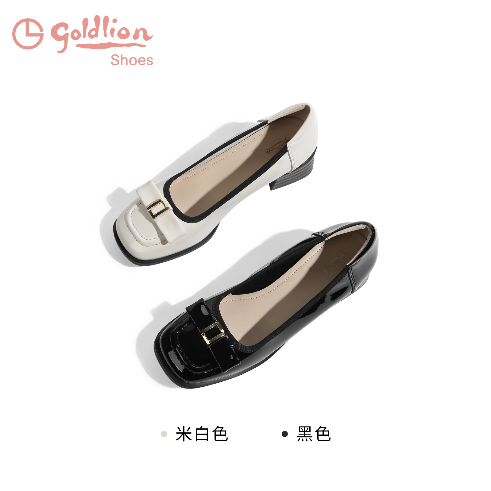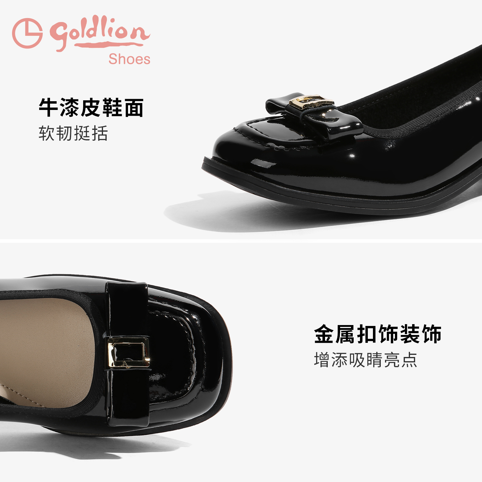 金利来通勤单鞋女春秋女鞋蝴蝶结浅口一脚蹬皮鞋粗跟方头鞋子真皮