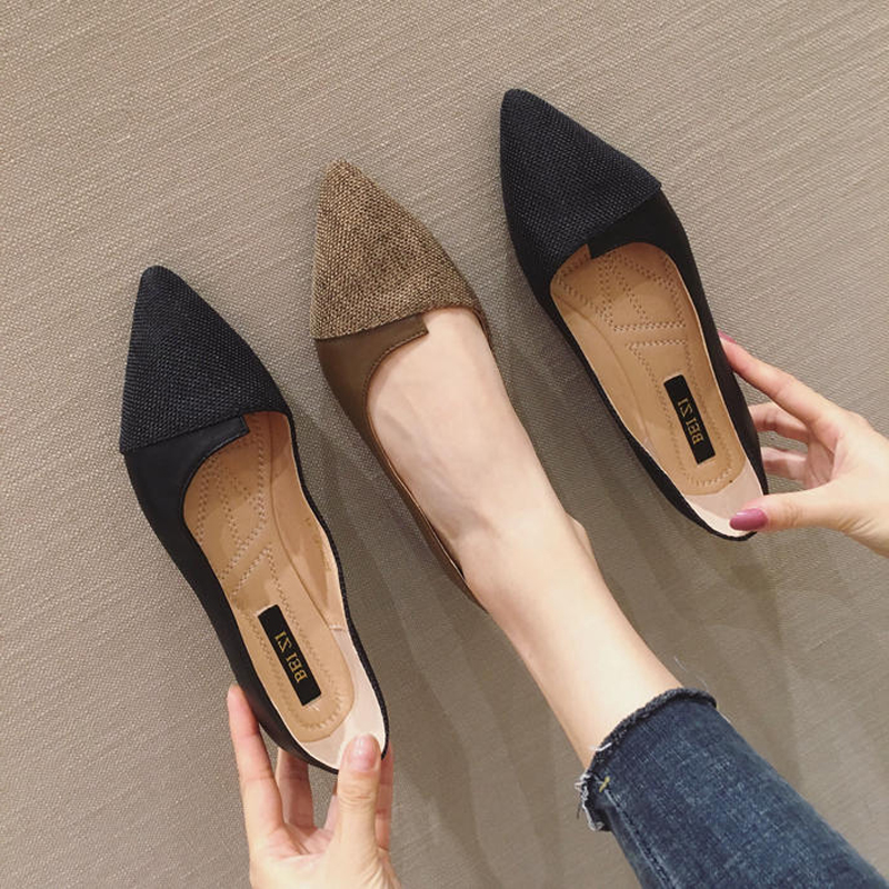 网红黑色平底单鞋女2025秋款百搭尖头浅口四季鞋工作鞋瓢鞋秋