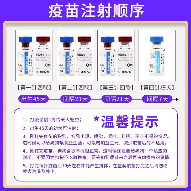 英特威幼犬套餐狗疫苗荷兰进口宠必威宠物狗疫苗四联狂犬幼犬套装