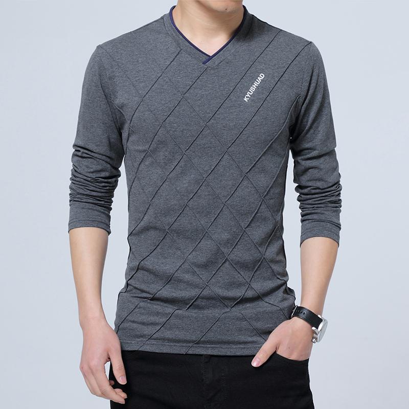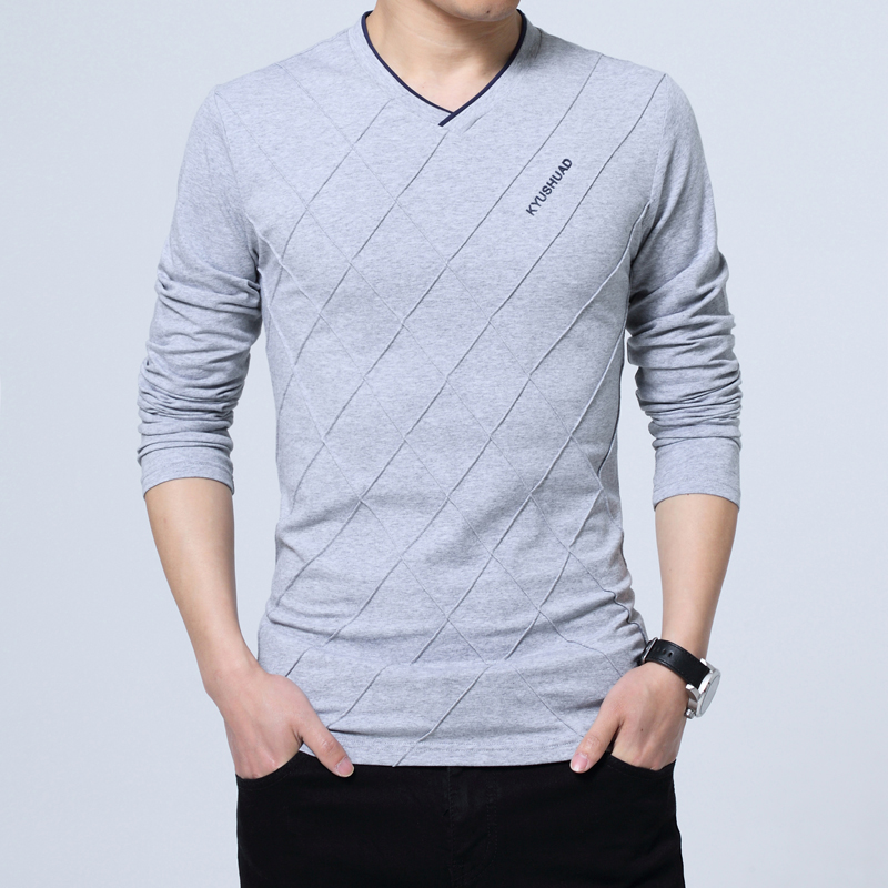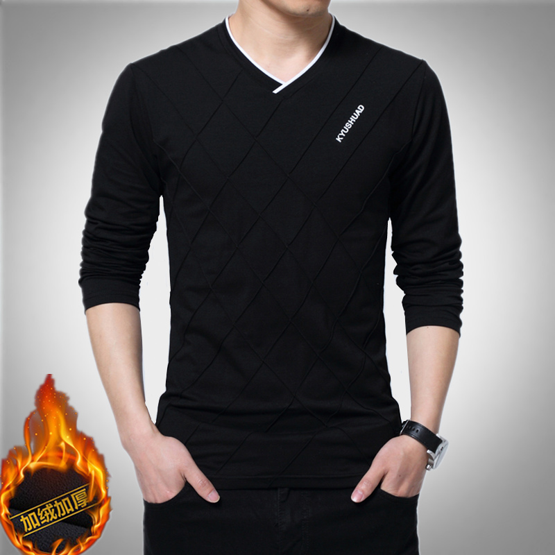 高个子长袖t恤白色男装v领修身薄款上衣不起球春秋款内搭穿打底衫