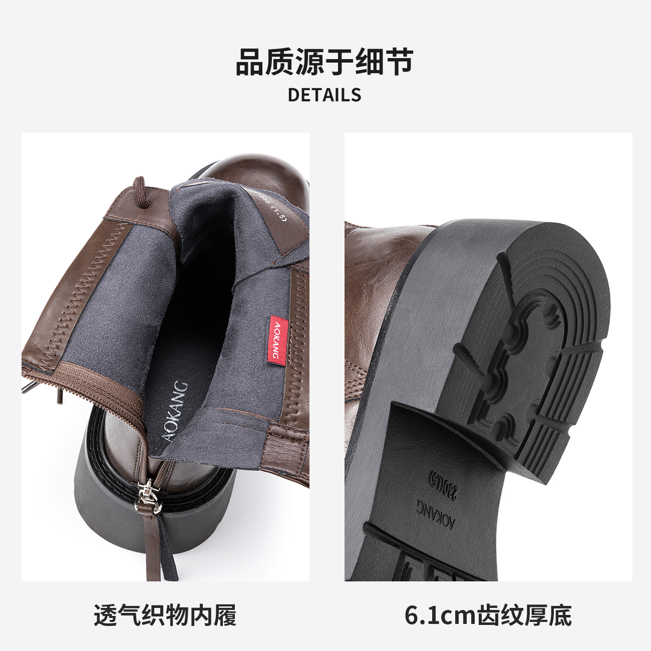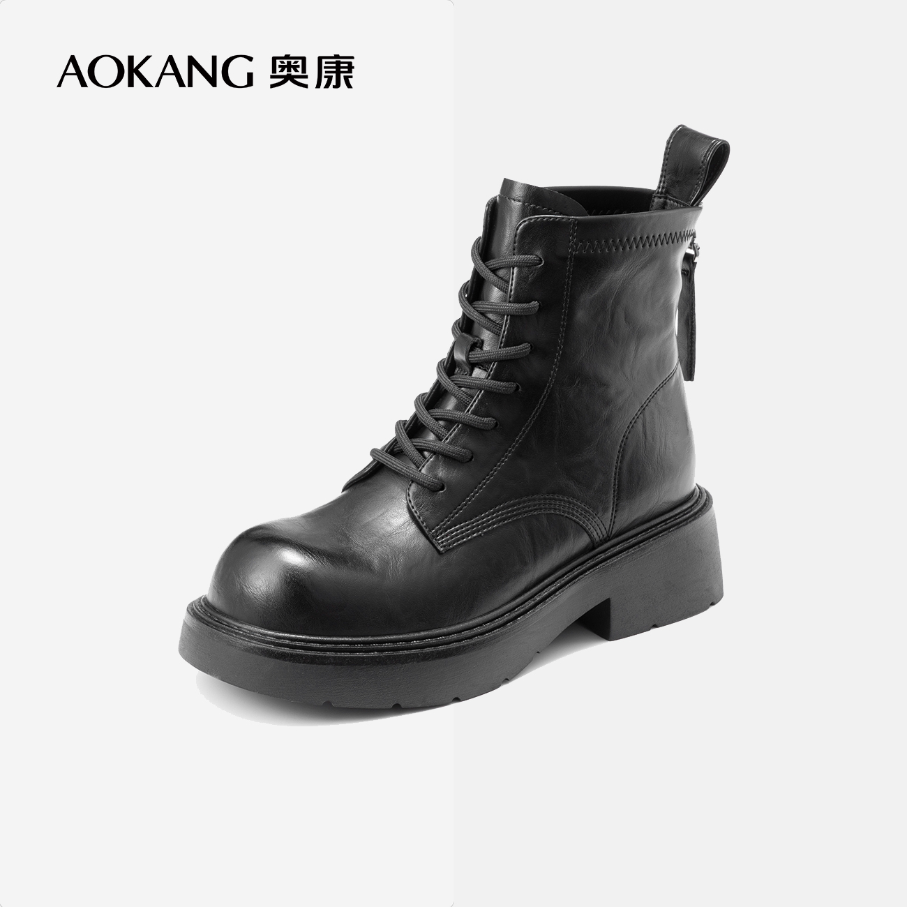 奥康女鞋 冬新款英伦风复古显瘦马丁靴厚底休闲时装靴短靴