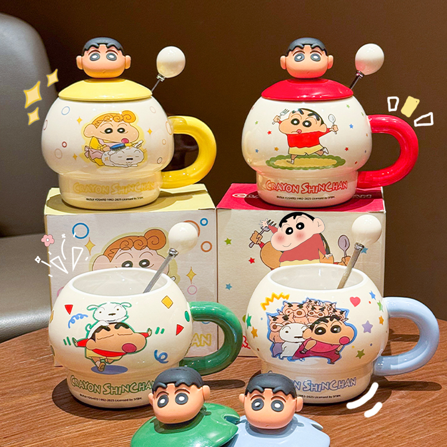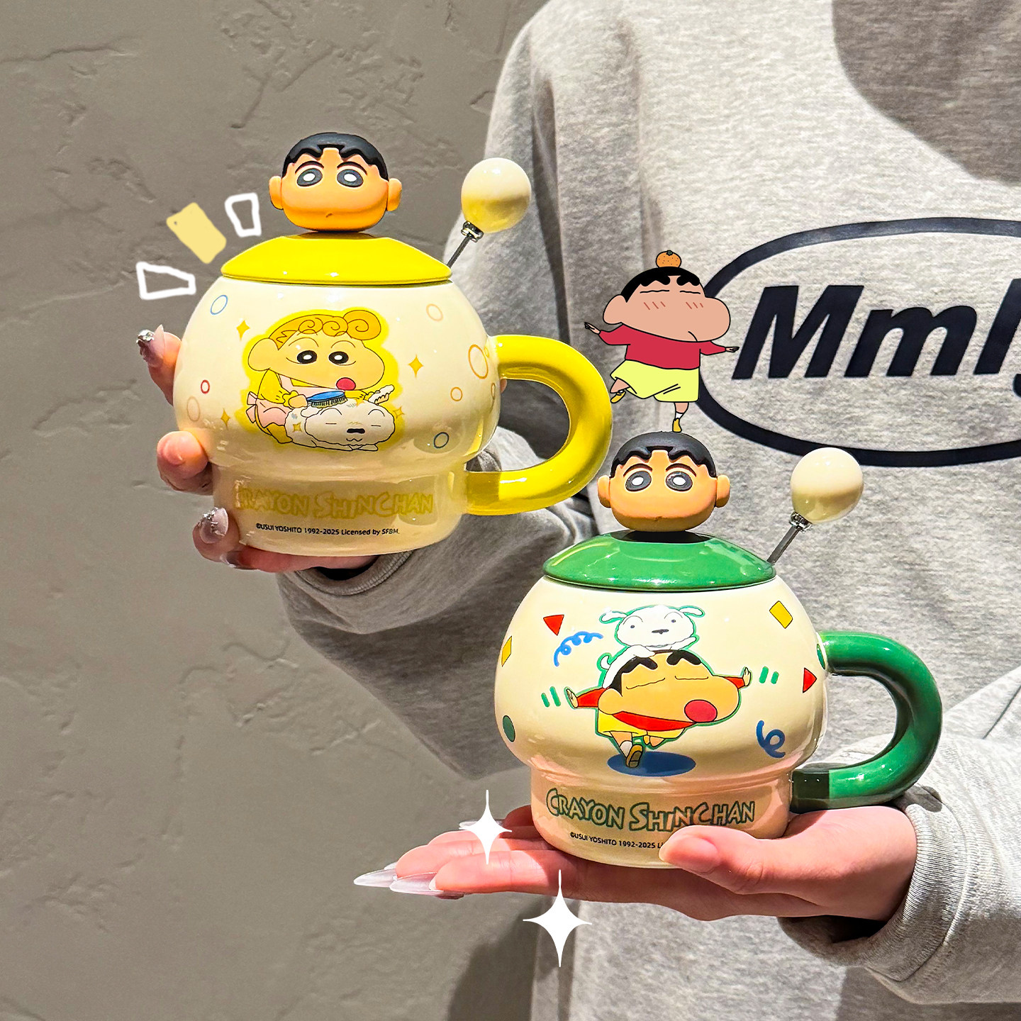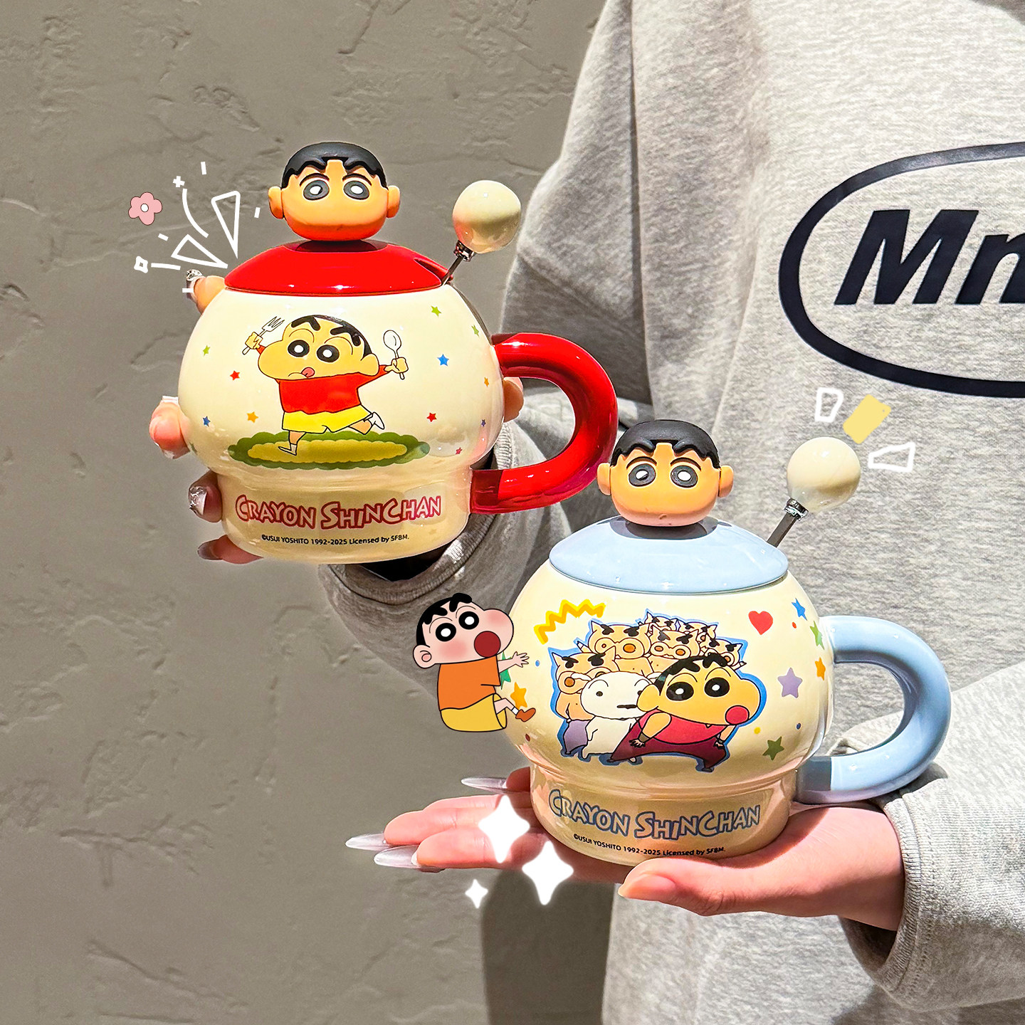 蜡笔小新联名陶瓷马克杯家用卡通可爱风创意带盖水杯早餐咖啡杯子