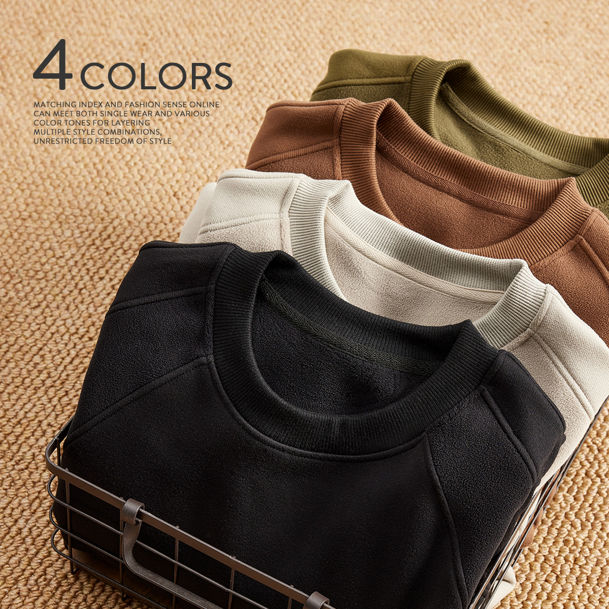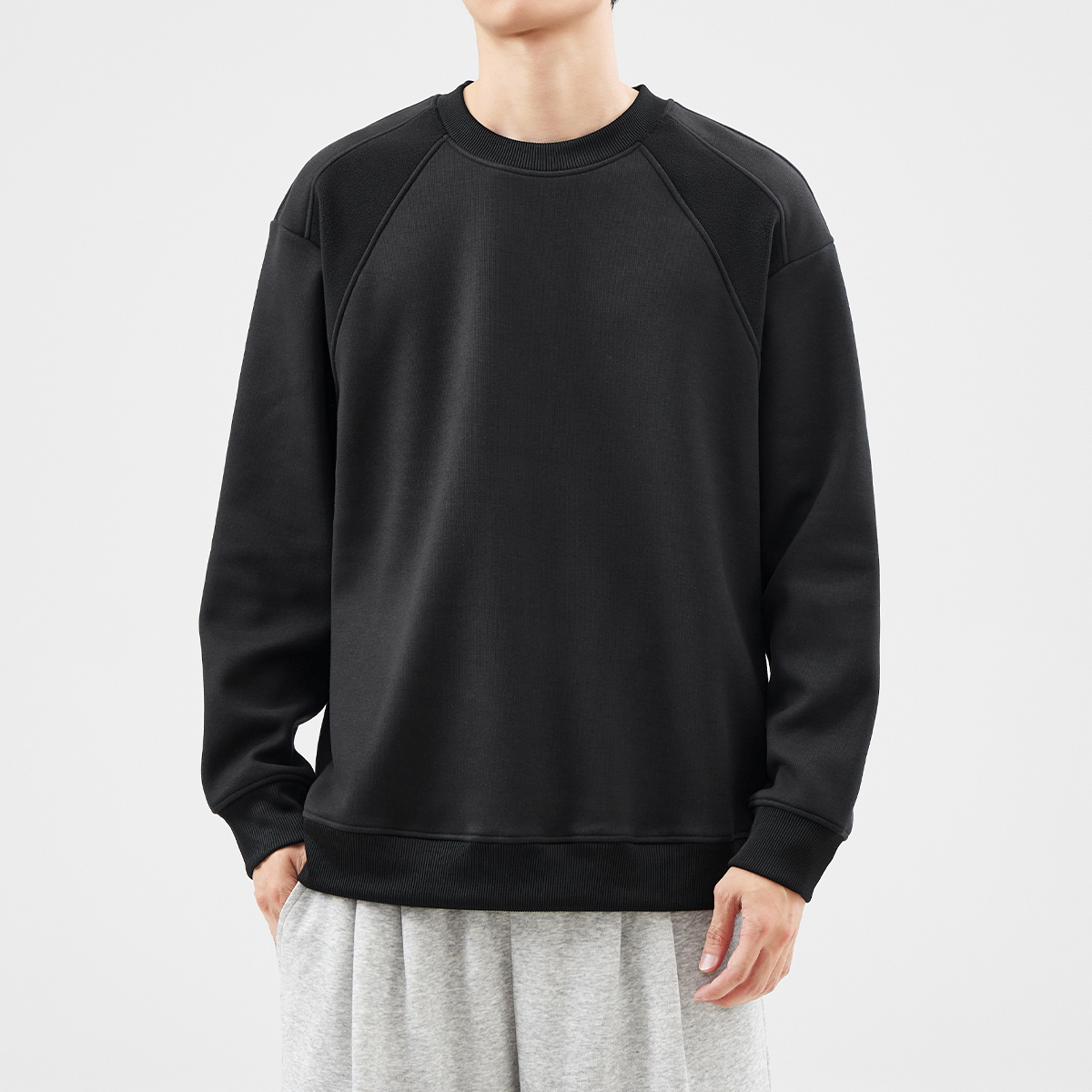 hansca470g重磅圆领加绒卫衣男款秋冬季保暖加厚拼接套头内搭上衣