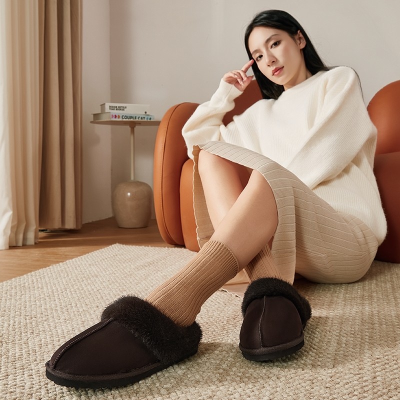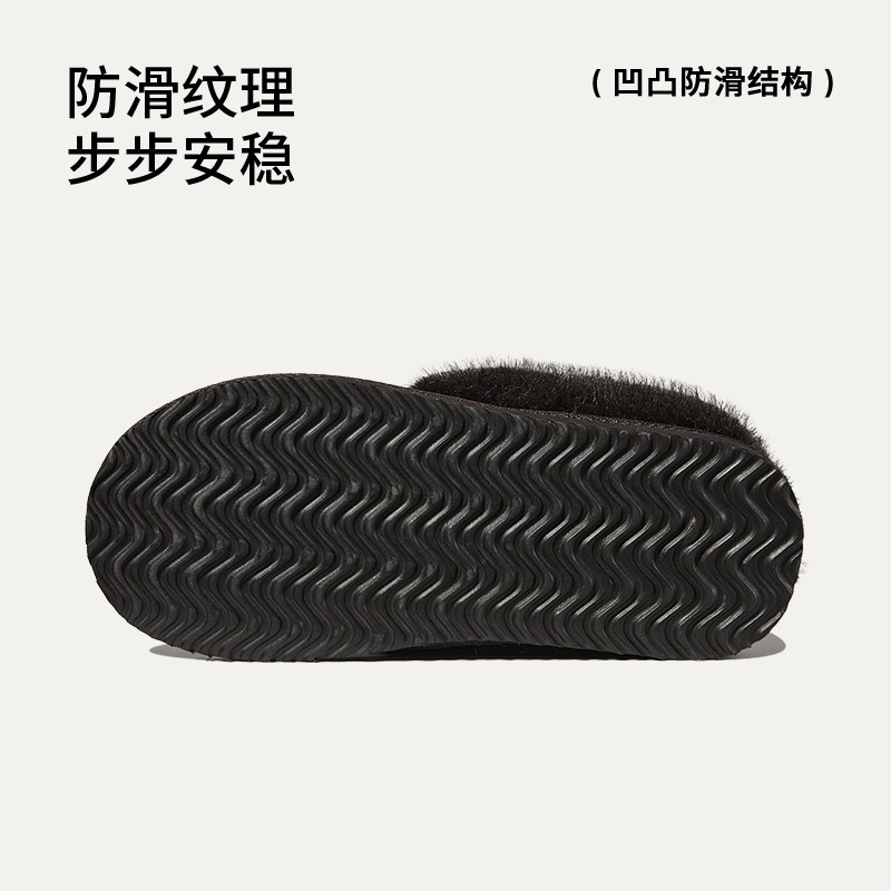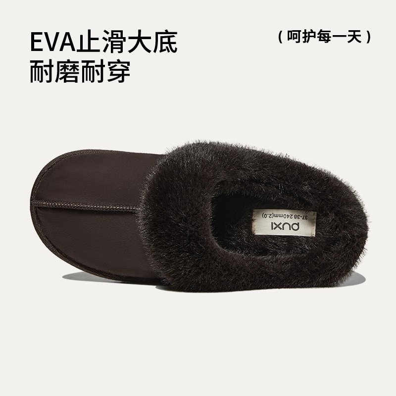 朴西秋冬女棉拖鞋休闲平底圆头一脚蹬便鞋浅口懒人毛毛鞋情侣半拖