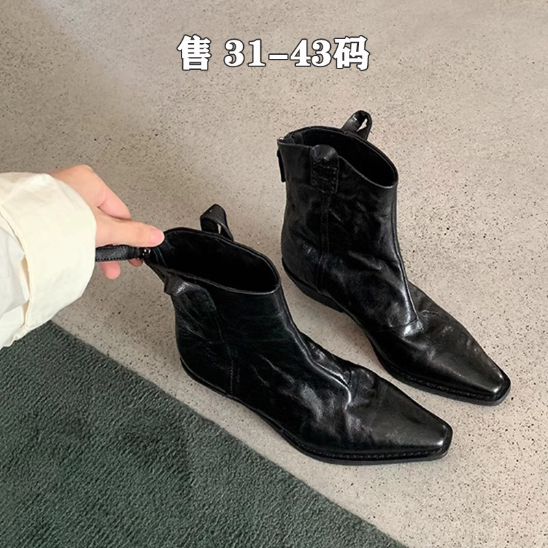 牛皮版~显瘦大码马丁靴女41到43短筒小码瘦瘦短靴313233粗跟44码