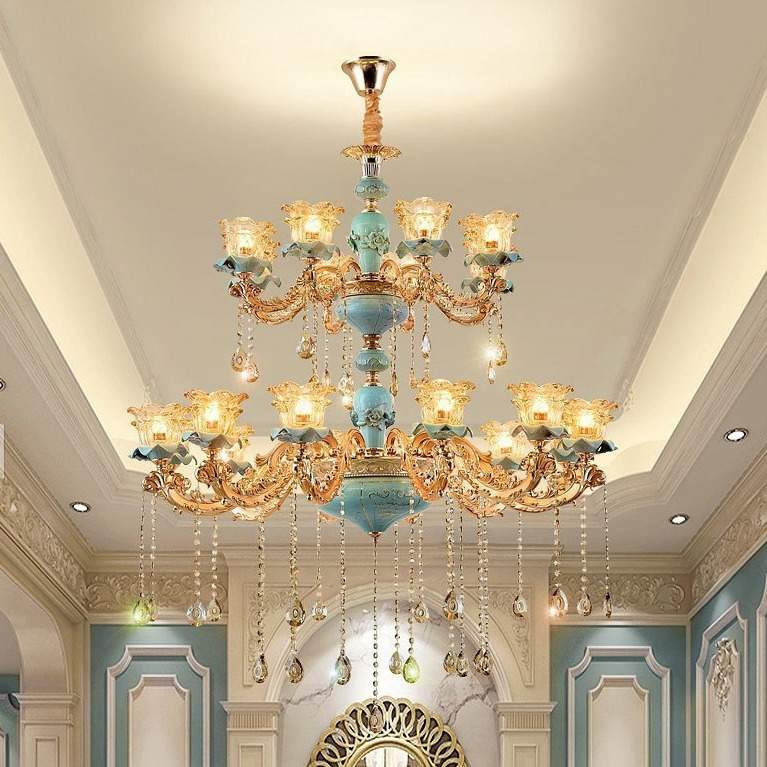 欧式别墅客厅大吊灯楼中楼复式楼中空楼梯灯大气奢华水晶复古灯具