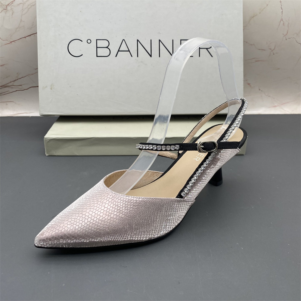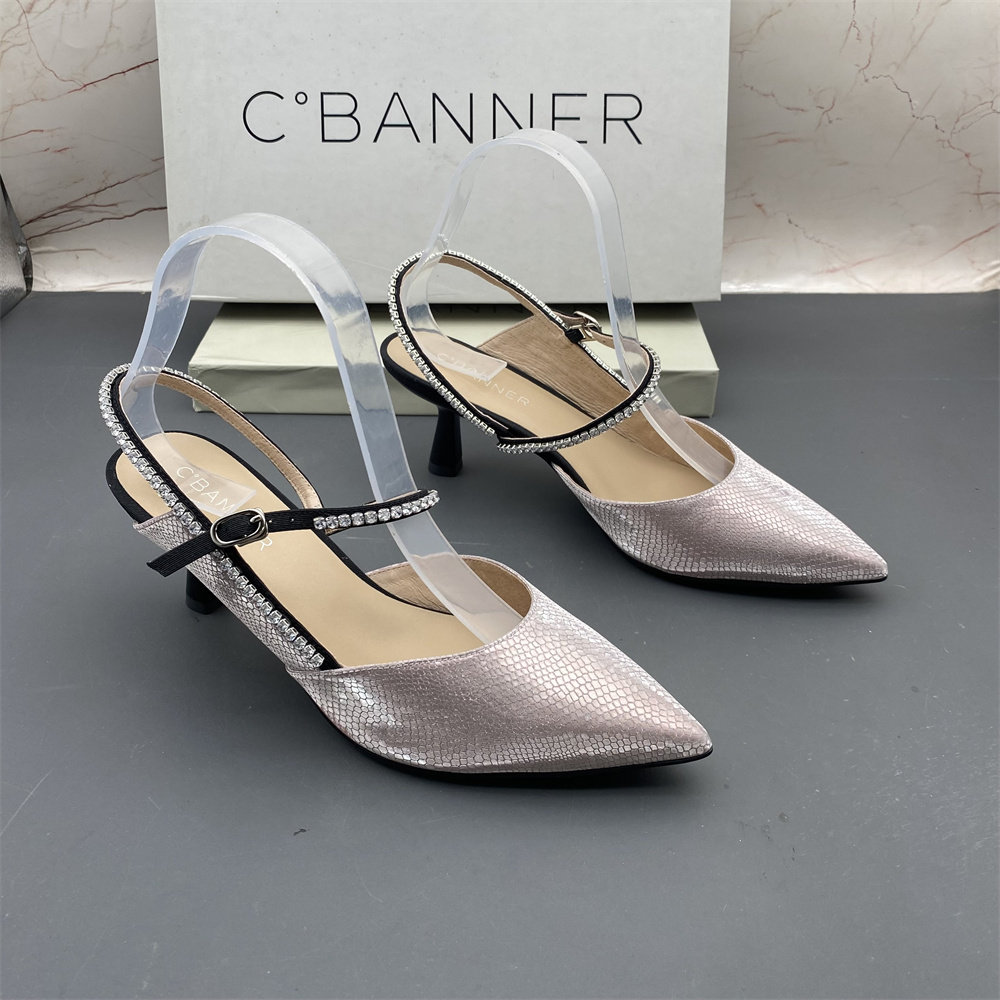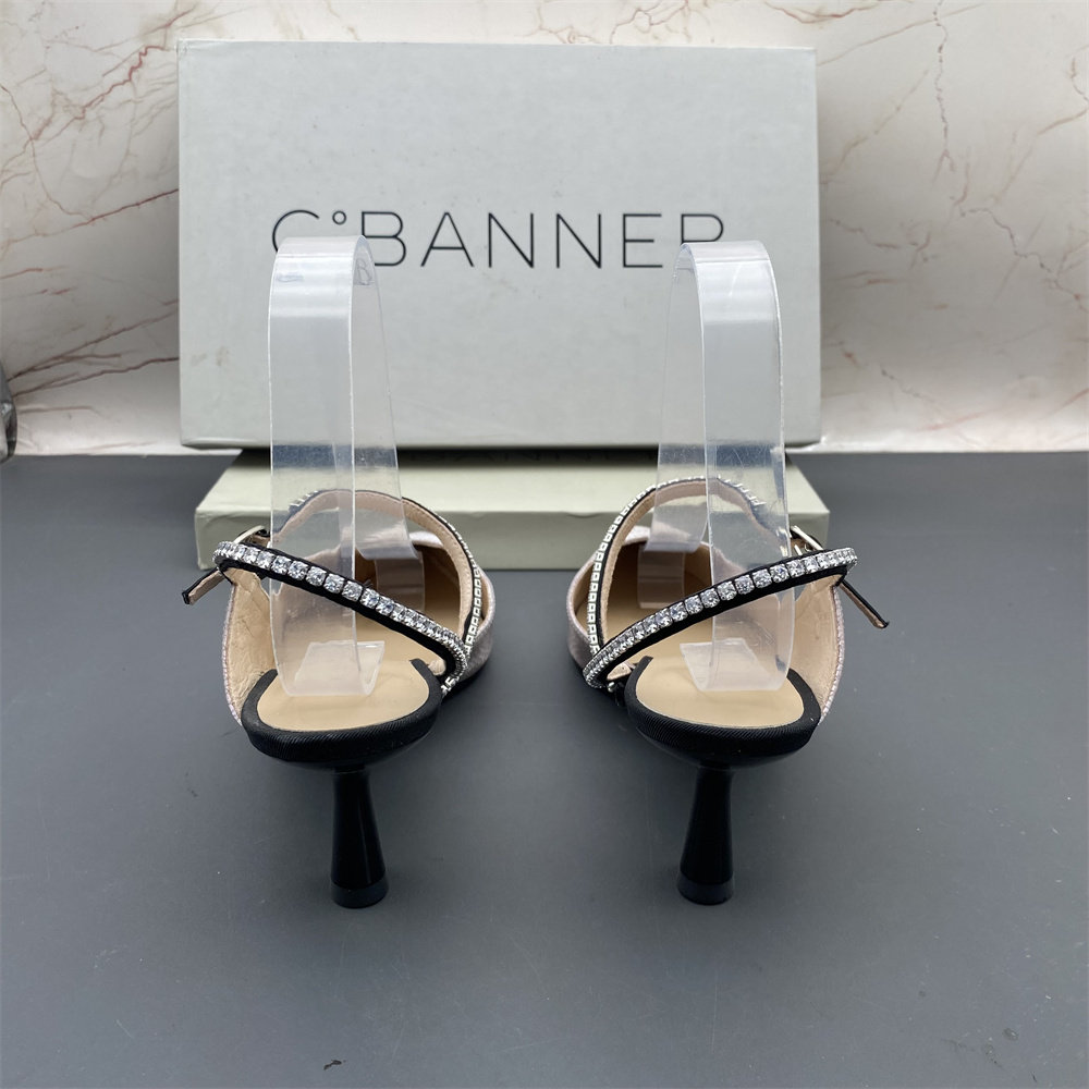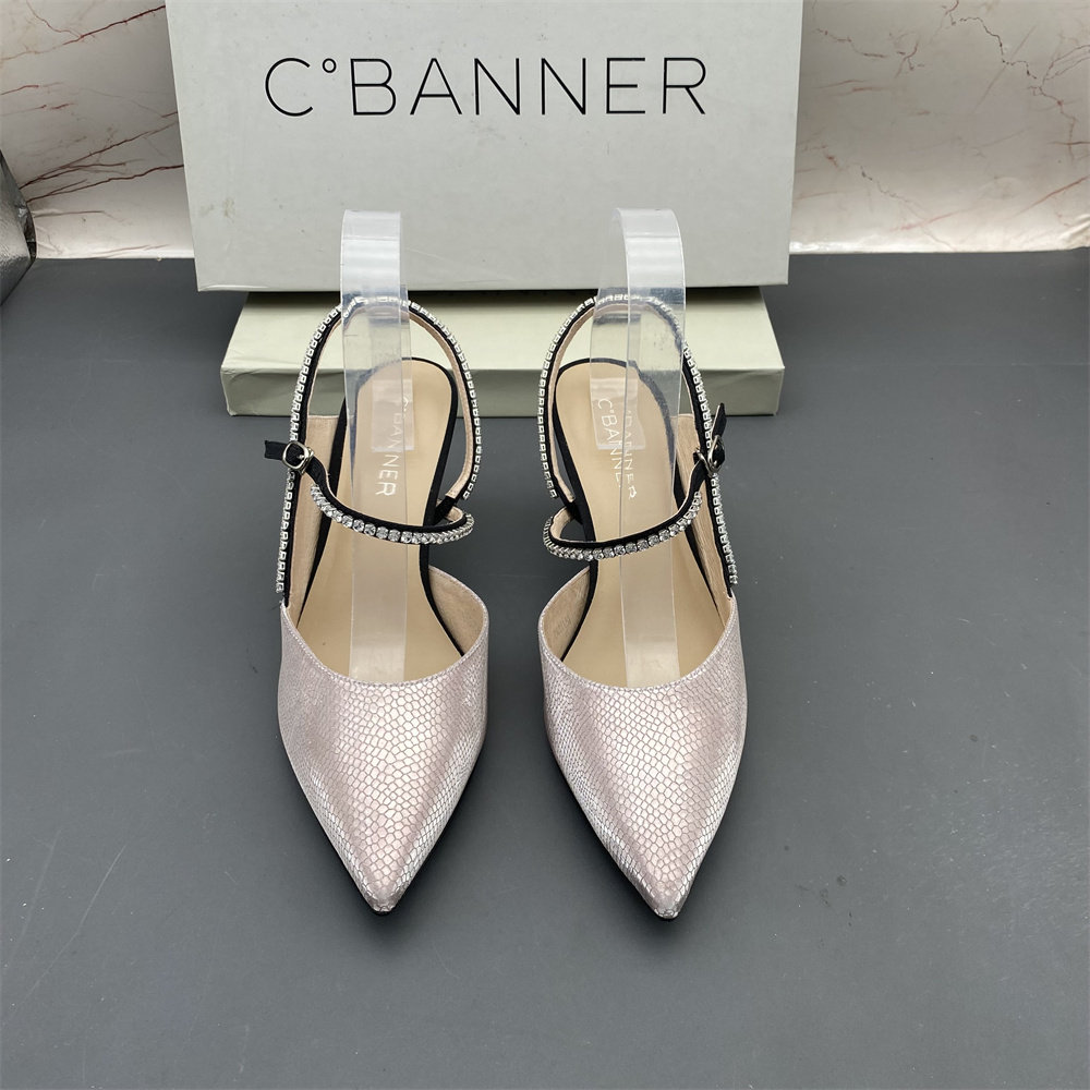 C.BANNER千百度撤柜断码处理女鞋细跟中跟尖头包头水钻扣带凉鞋