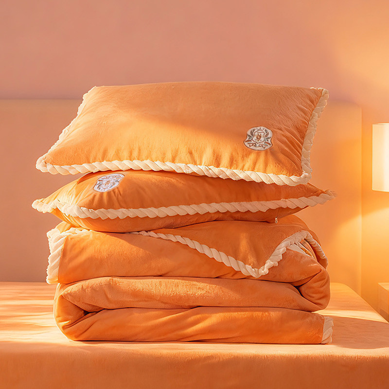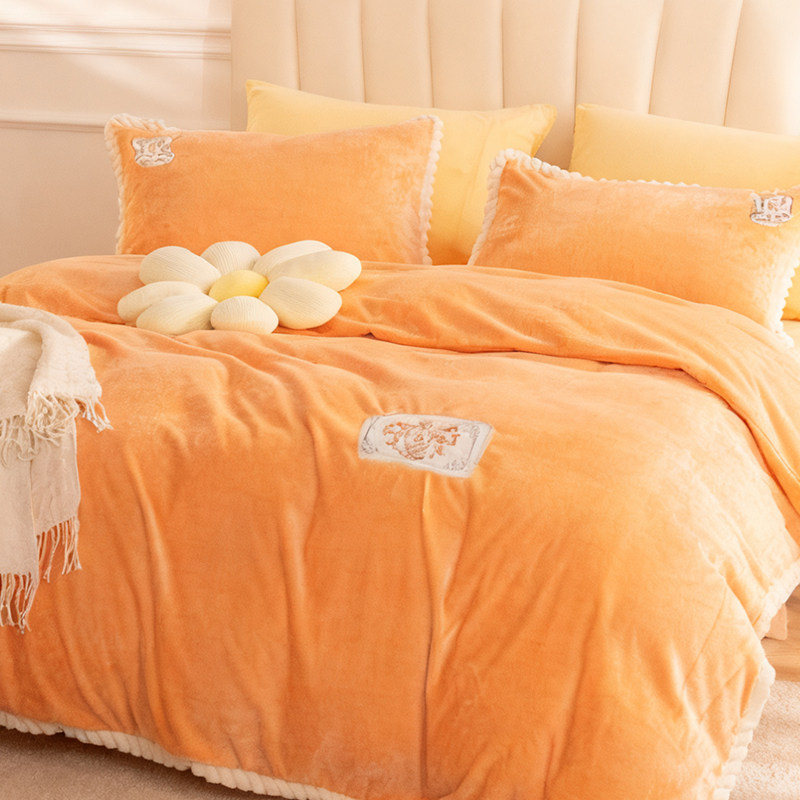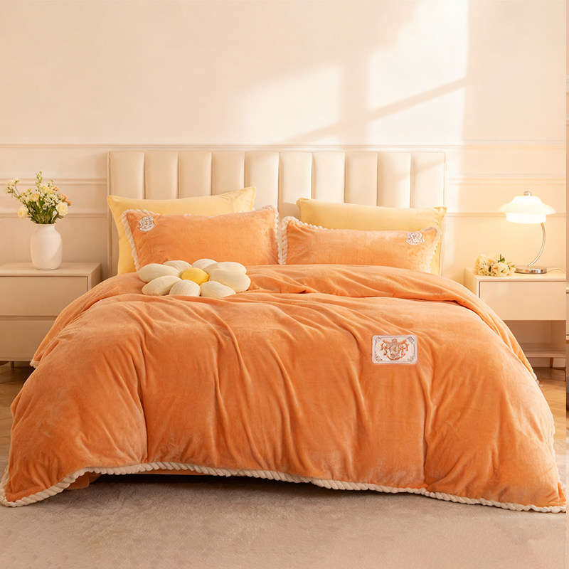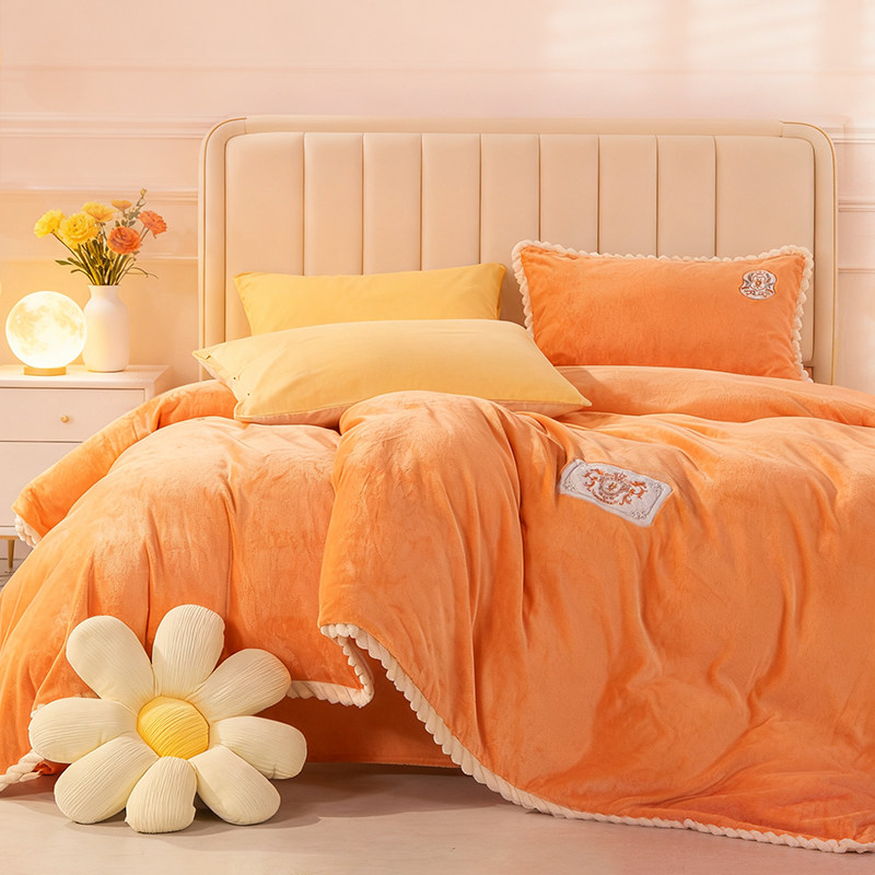 富安娜家纺牛奶绒四件套双面慕斯绒珊瑚绒法兰绒加厚床单被套冬季