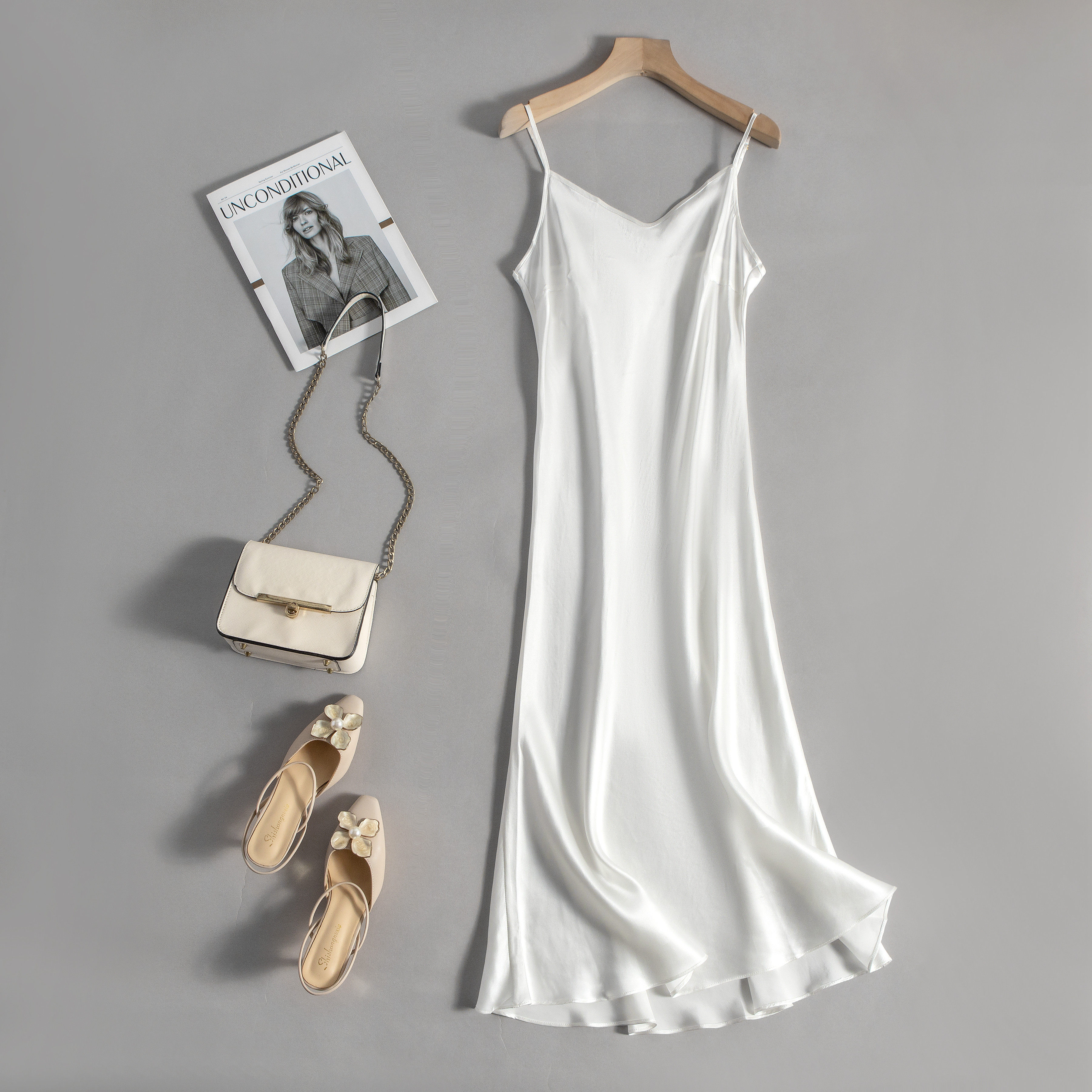新款斜裁真丝吊带连衣裙女修身百搭内衬中长裙桑蚕丝缎面打底裙夏