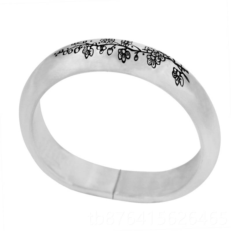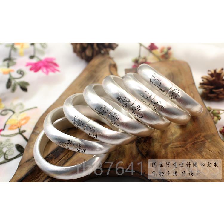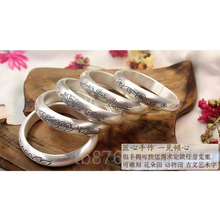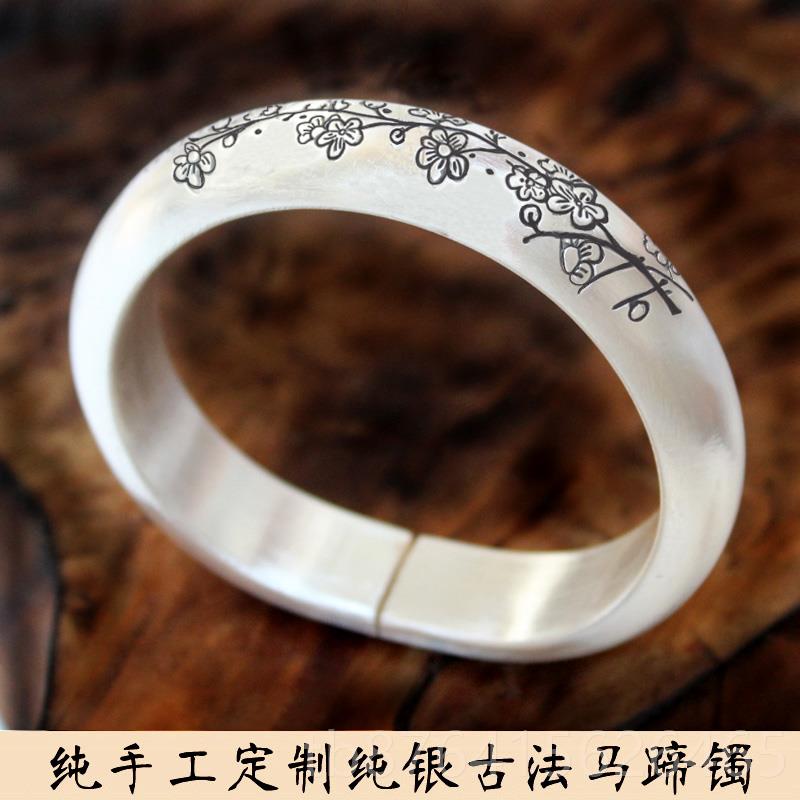 正品手工银手镯女999纯银开口实心足复古银法饰妈妈款古马蹄形银