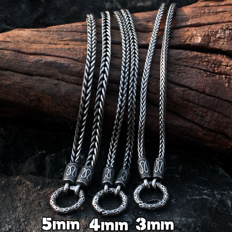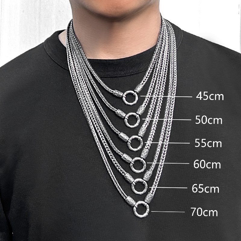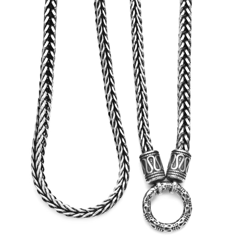 平安纹佛牌链男士个性潮人钛钢狐尾链复古百搭三挂项链高端毛衣链