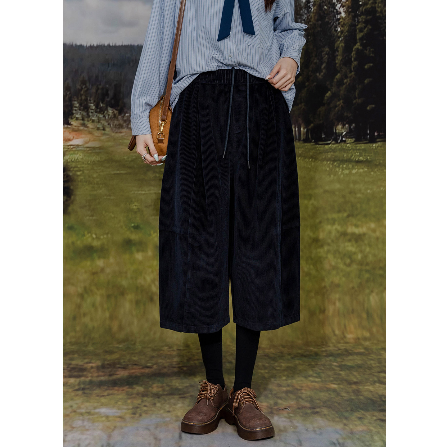 复古灯芯绒茧型阔腿百搭七分裤