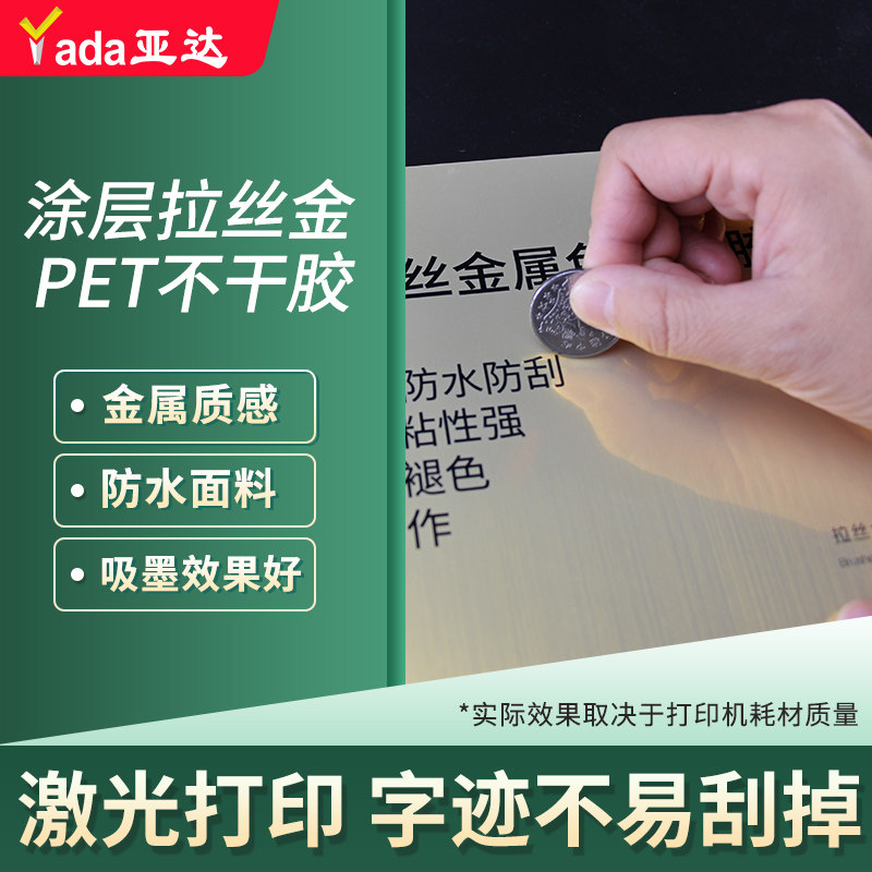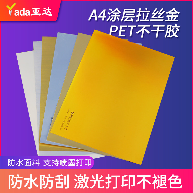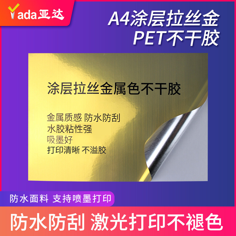 亚银哑金不干胶打印纸pet拉丝金银色a4标签贴纸8丝加厚防水背胶激光喷墨亮银亮金撕不烂仿金属质感可手写