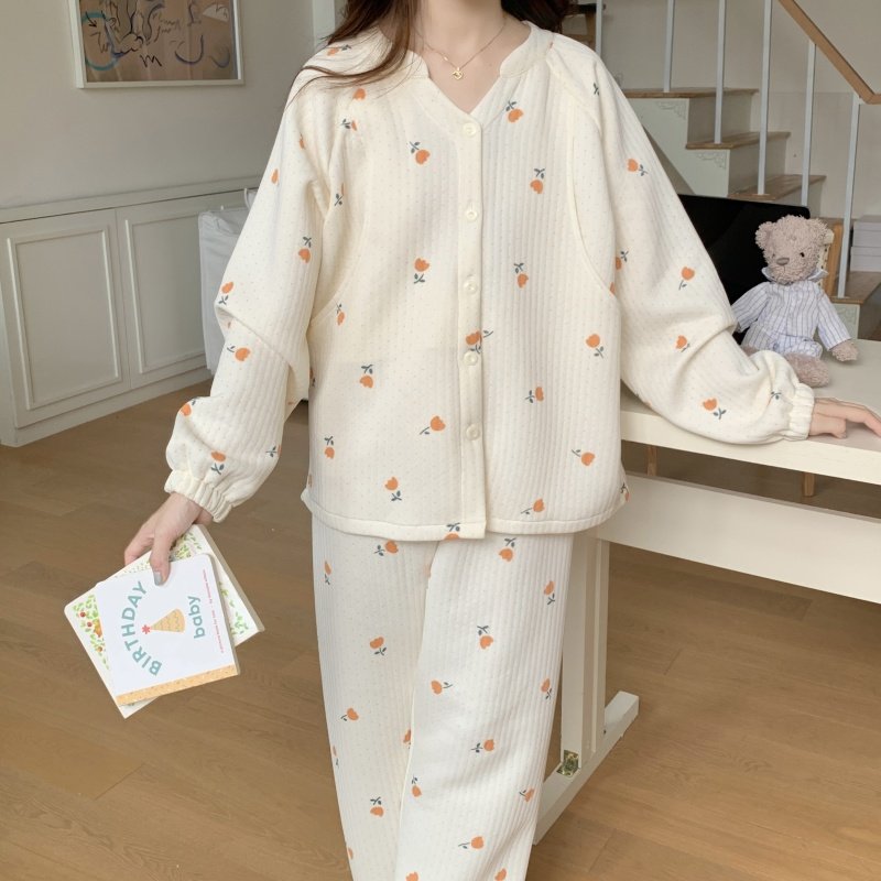 空气棉月子服冬厚款十月份11产后纯棉加厚孕妇睡秋冬季哺乳衣喂奶
