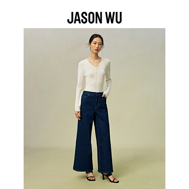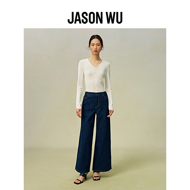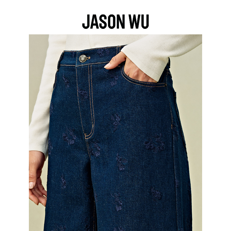 JASON WU 秋季新款刺绣百搭牛仔裤子长裤休闲裤阔腿裤女