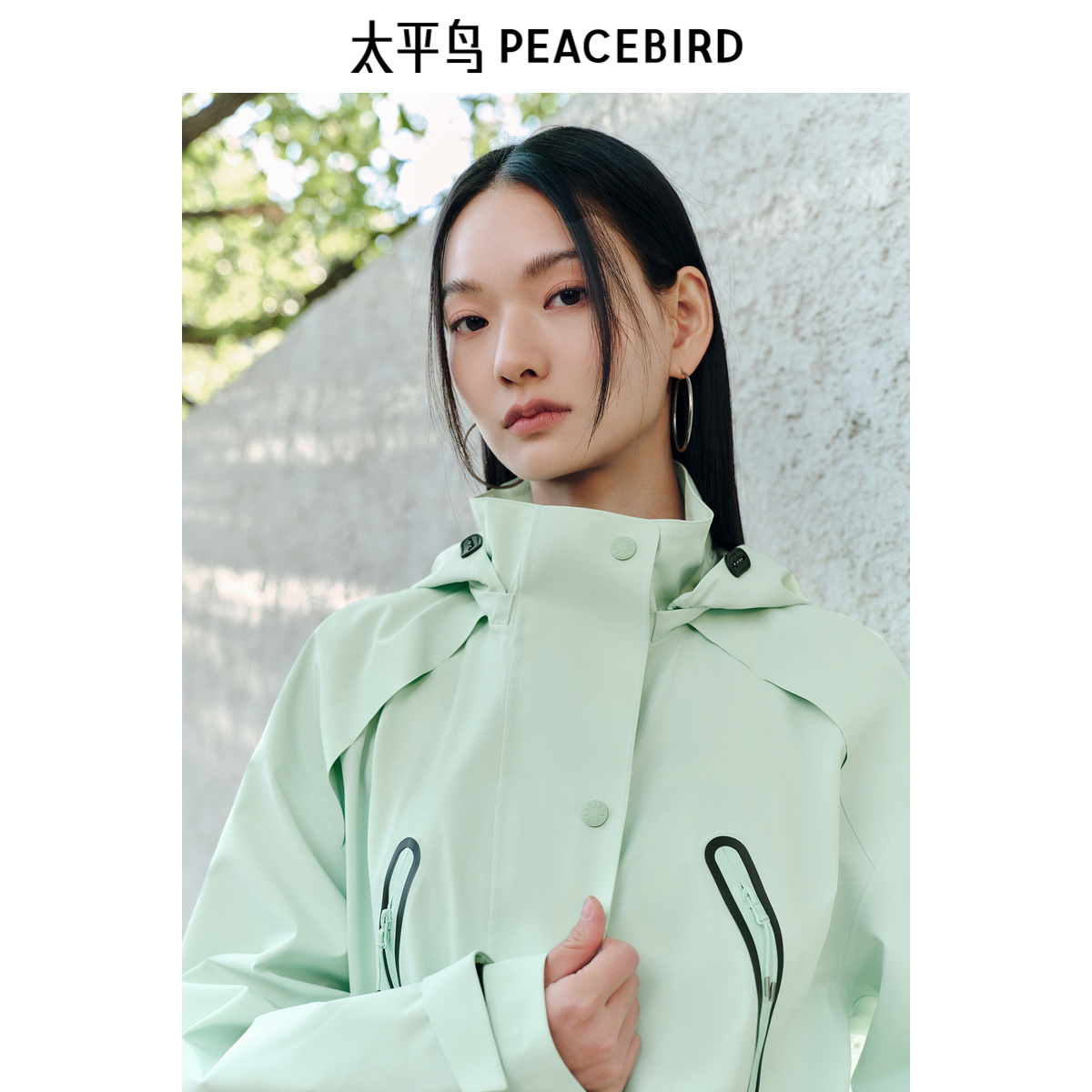 太平鸟2025新款硬壳冲锋衣户外夹克外套女休闲宽松绿色A3BBF1406
