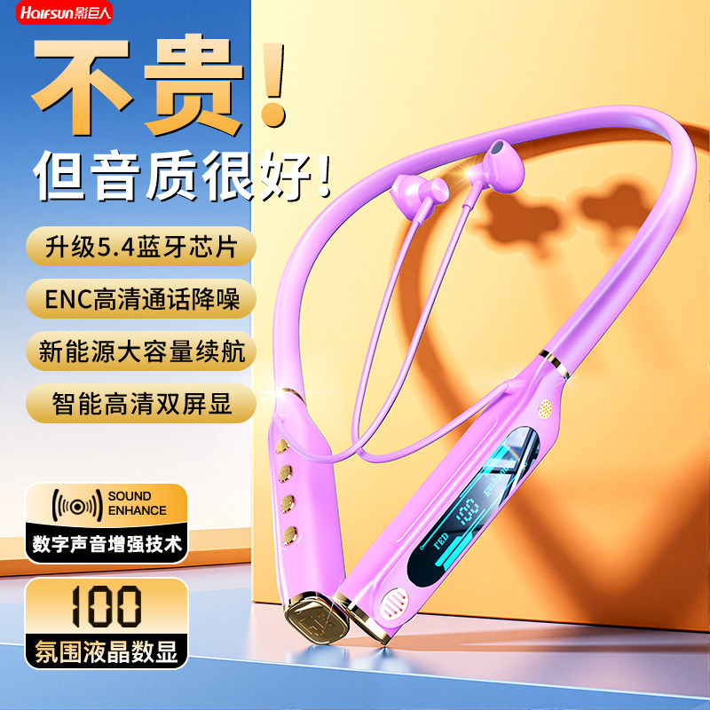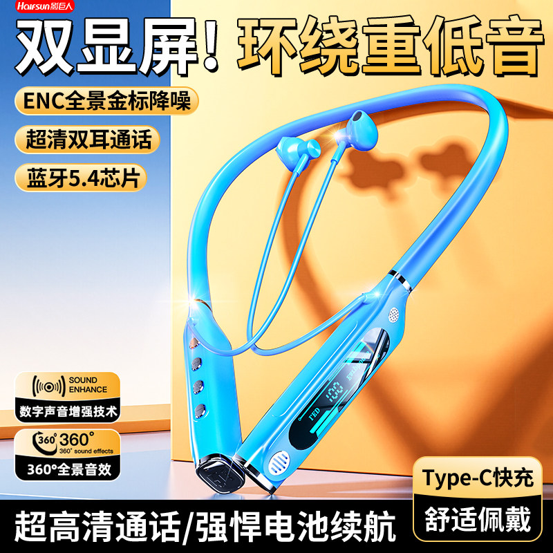 影巨人2026新款重低音蓝牙耳机无线挂脖式超长续航运动跑步半入耳