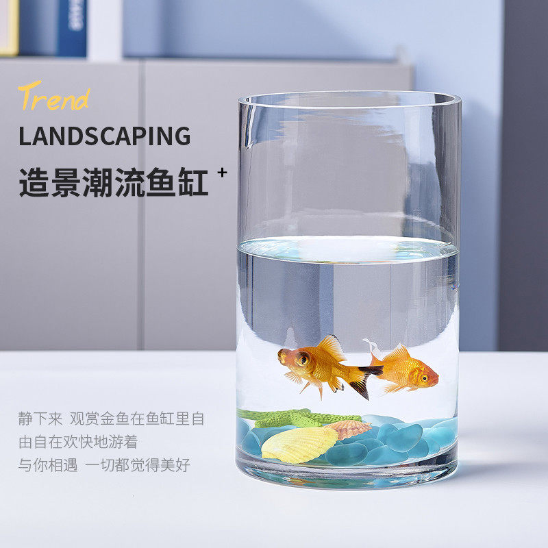 创意客厅金鱼缸玻璃水族箱小型生态圆形圆柱大号乌龟缸造景培