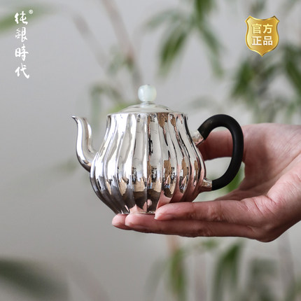 纯银时代 菊瓣鹤首泡茶壶足银999纯手工银壶家用办公室中号170ml