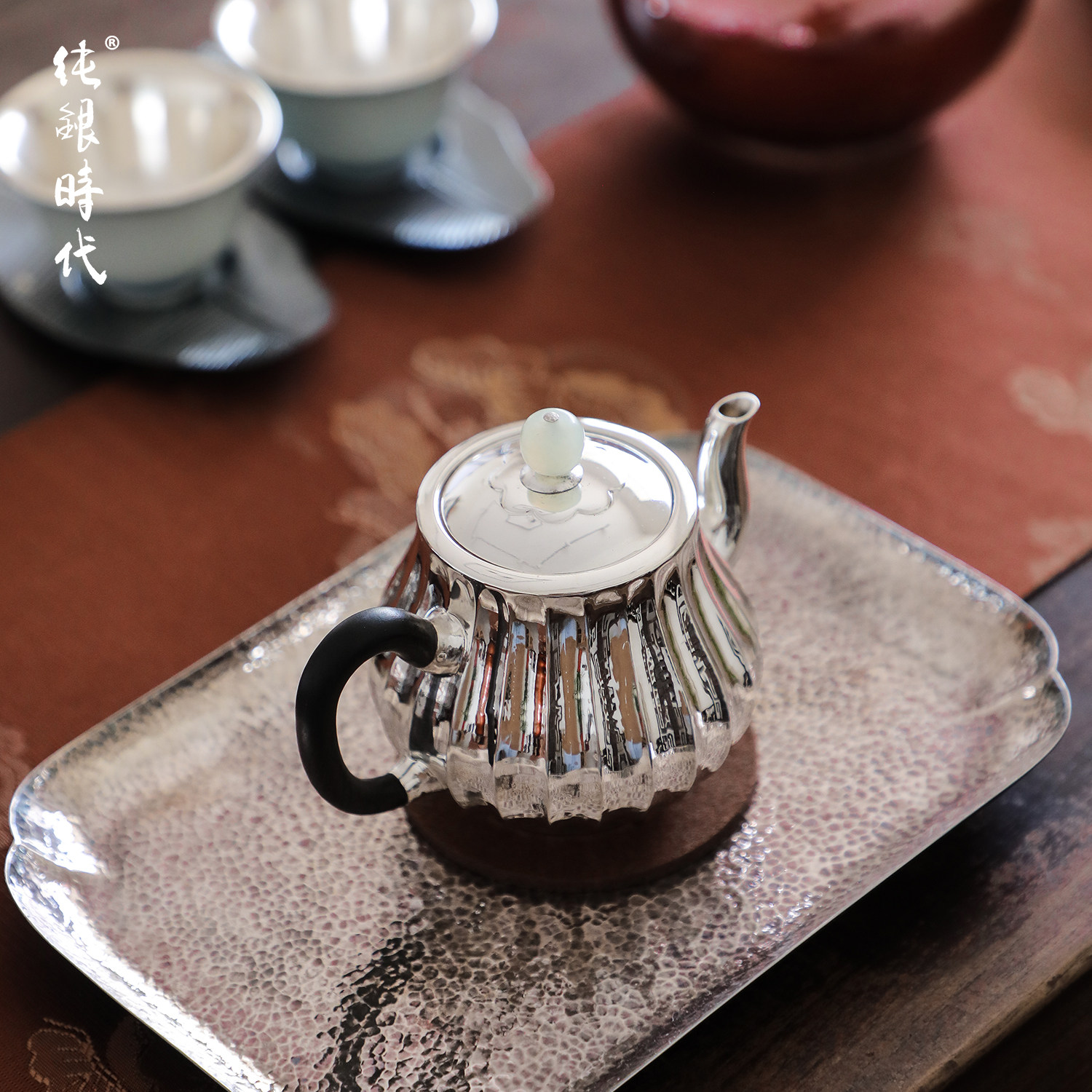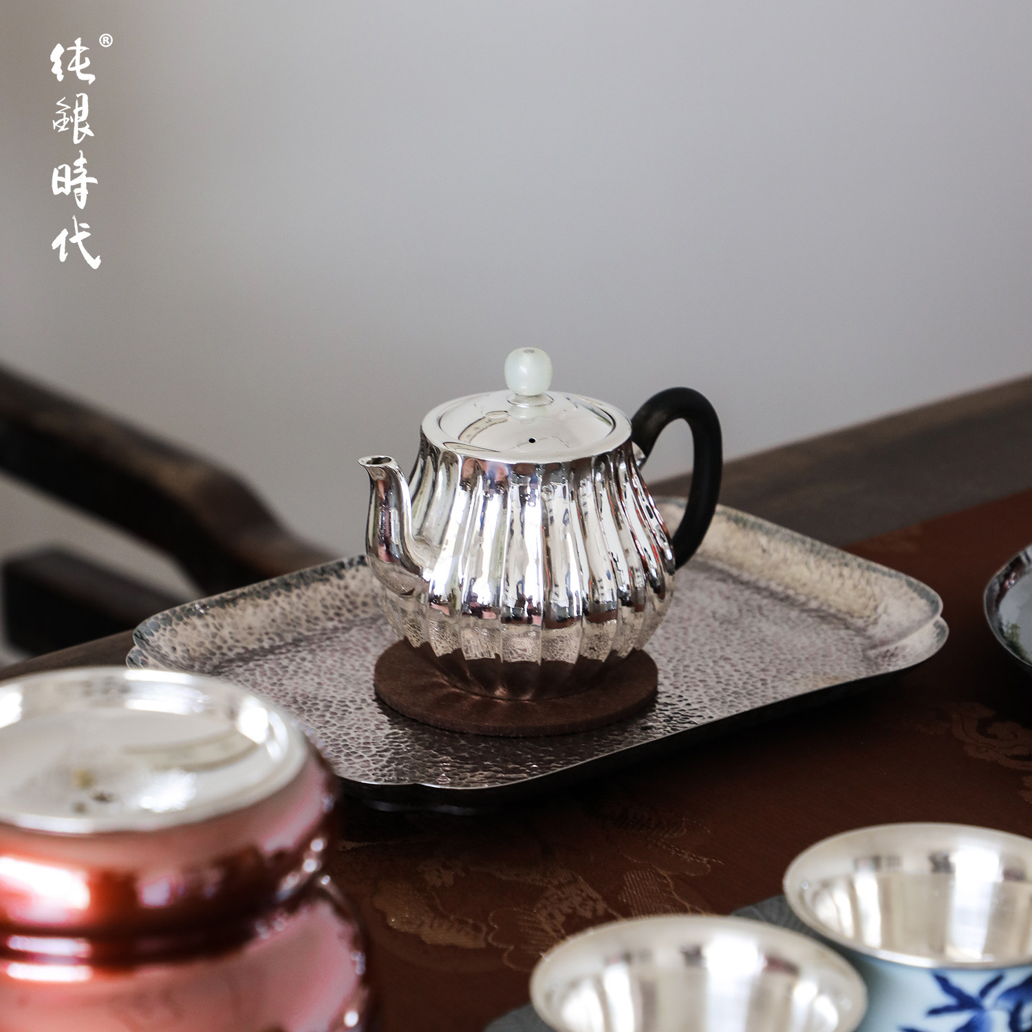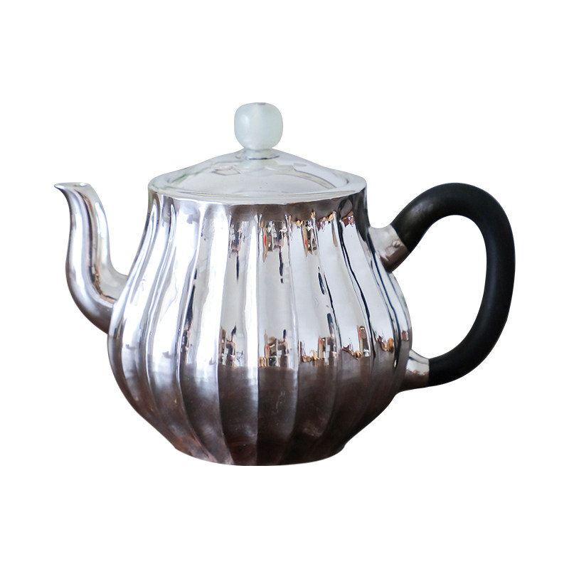 纯银时代纯银手工泡茶壶菊瓣银色