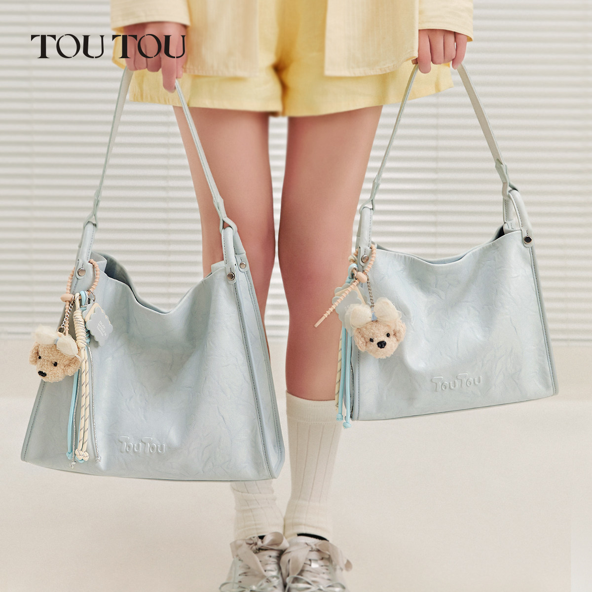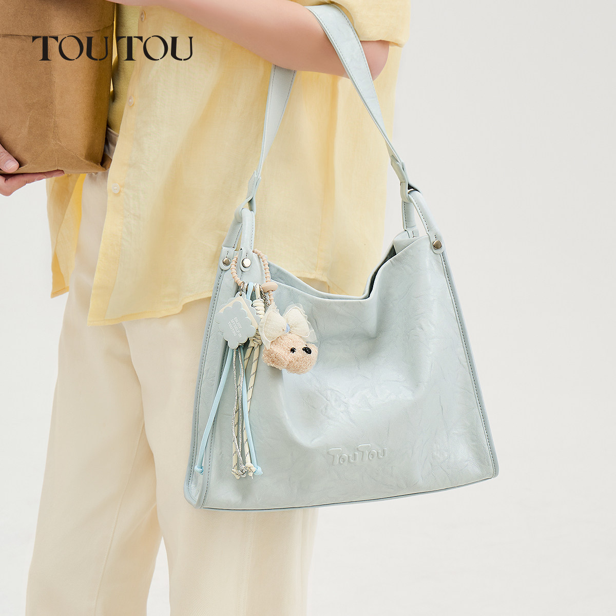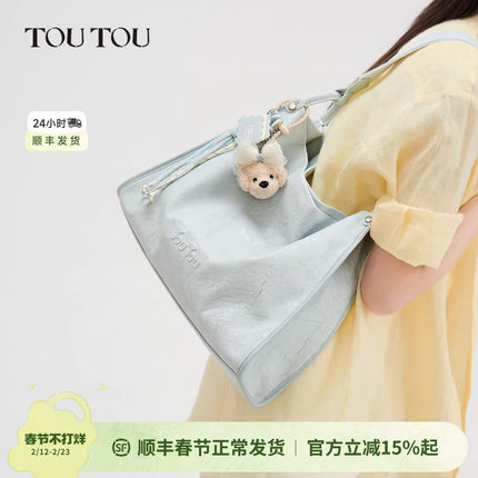 新年TOUTOU新款肉松狗托特包蓝色大容量腋下包简约通勤软皮包包女