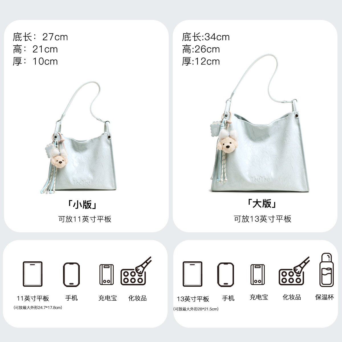TOUTOU蓝色托特包大容量单肩包