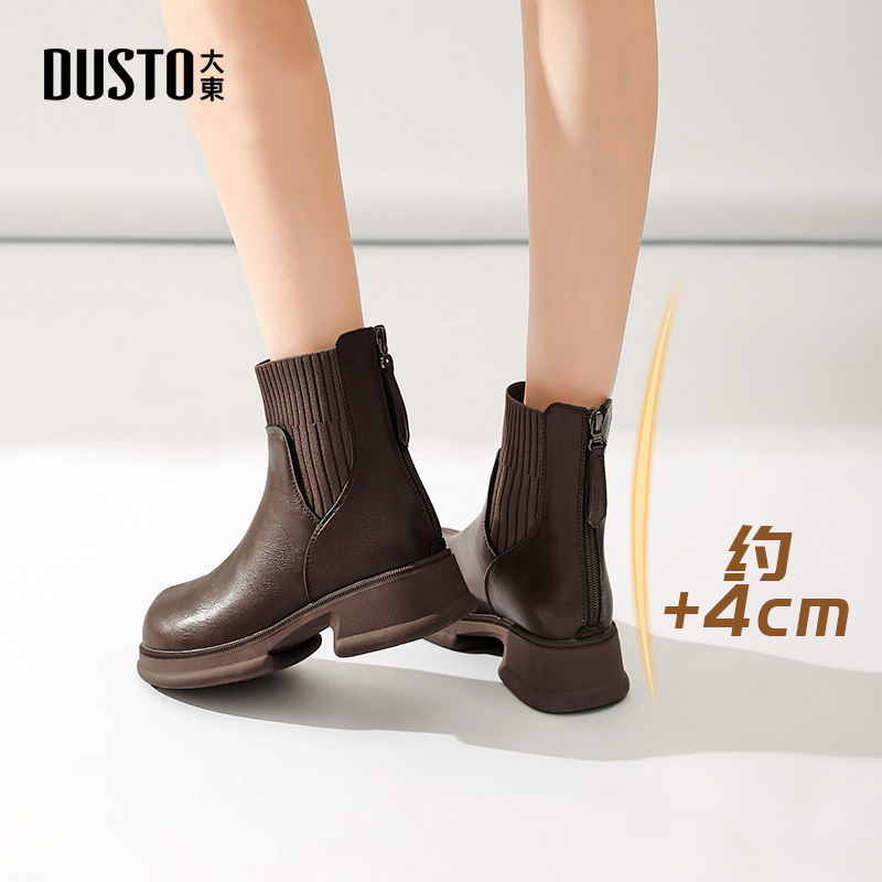 大东时装靴女鞋冬休闲拼接圆头粗跟后拉链切尔西靴鞋0116