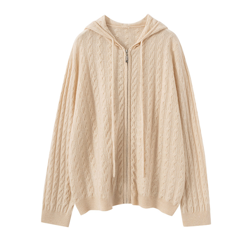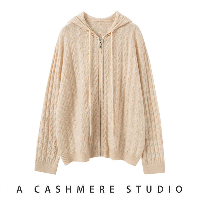 商场娜尔思专柜同款山羊绒开衫慵懒风拉链帽衫女针织宽松羊绒毛衣