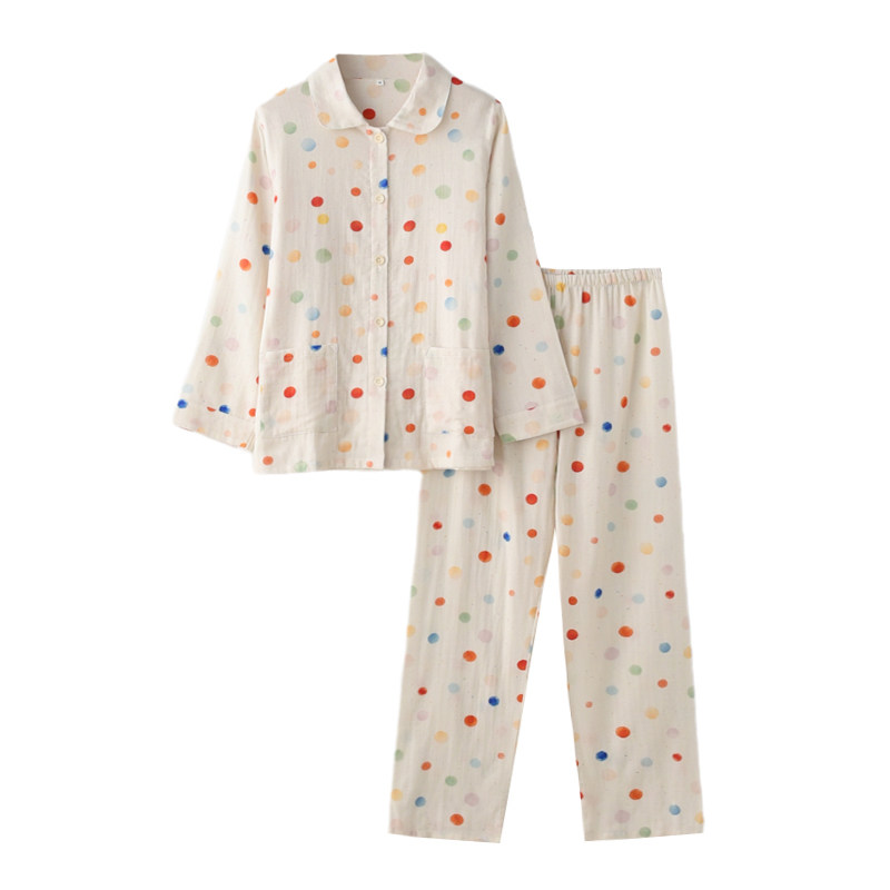 女纯棉纱布甜美圆点长袖家居服