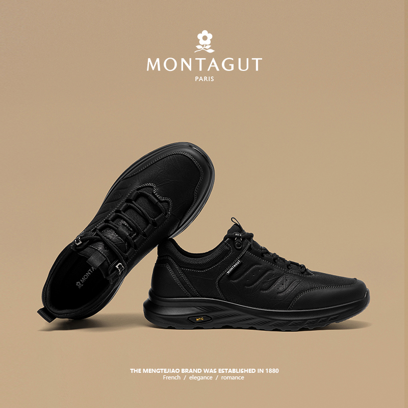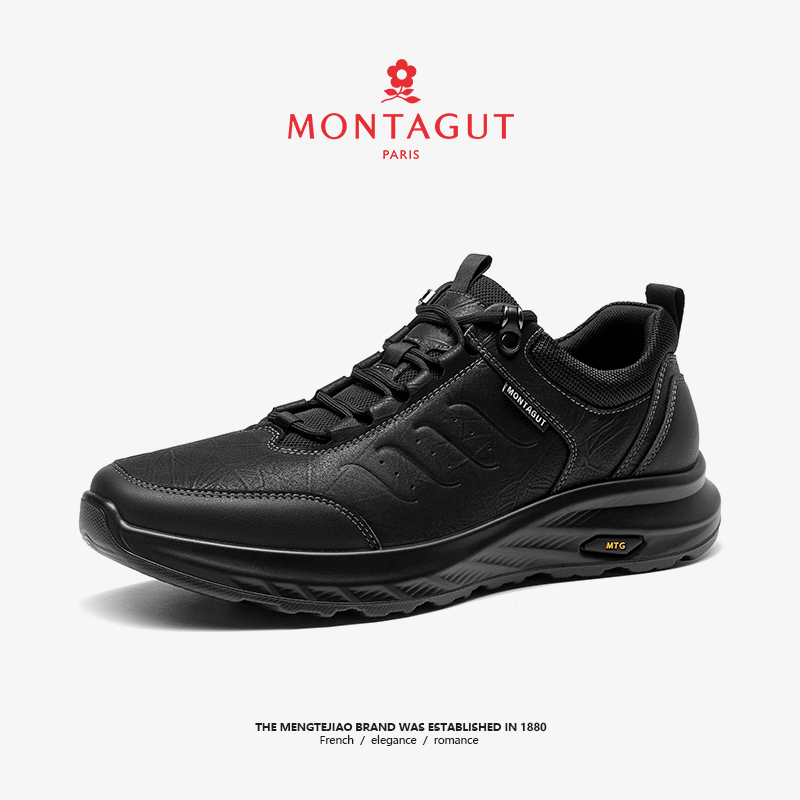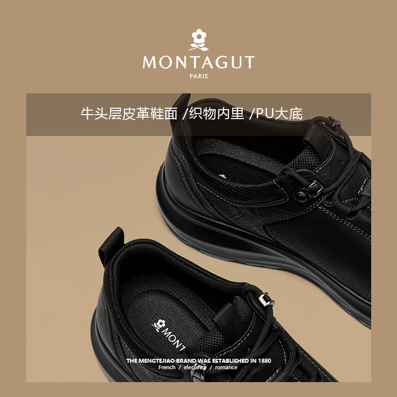 梦特娇头层牛皮男鞋秋冬2025新款潮流休闲鞋中年爸爸防滑运动皮鞋