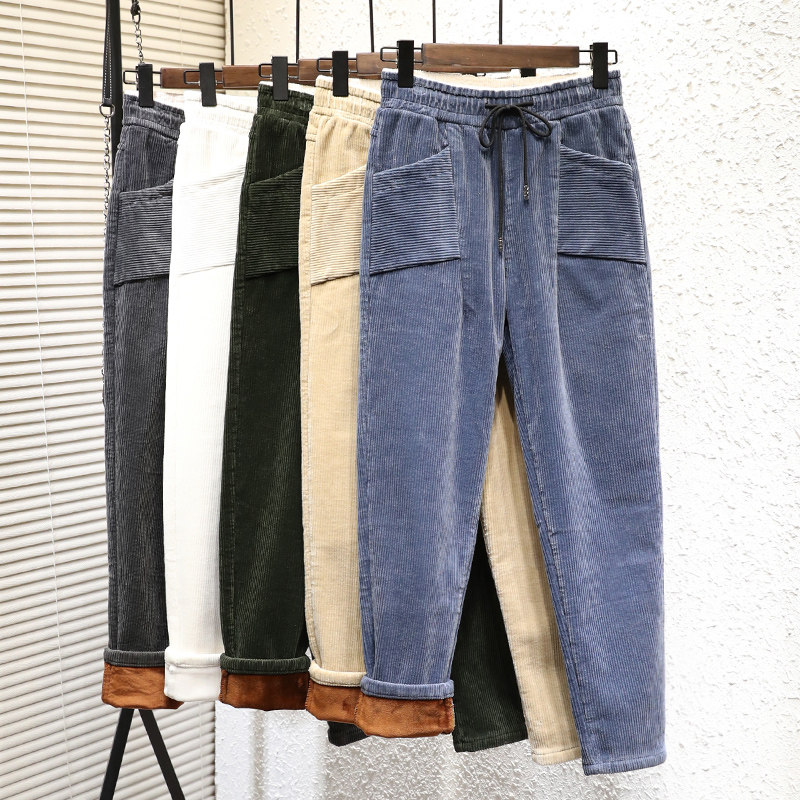 灯芯绒裤子哈伦裤女秋冬高腰加绒加厚小脚宽松条绒女裤老爹萝卜裤