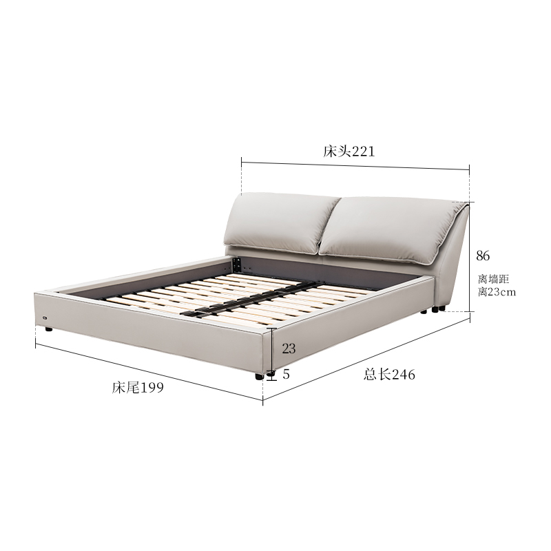 顾家家居现代简约大象耳朵床实木高端大气真皮软床小飞象皮床8037