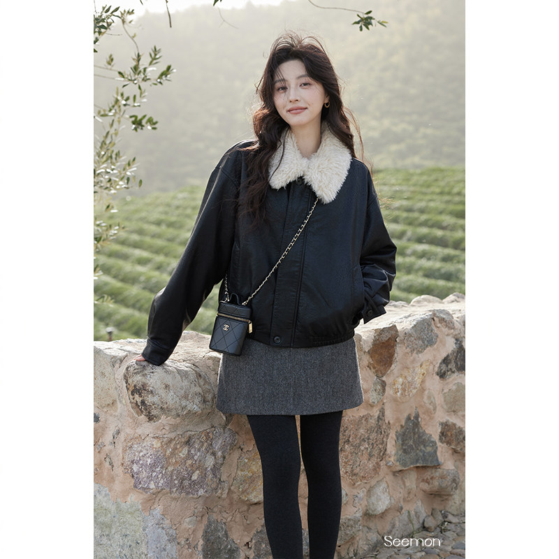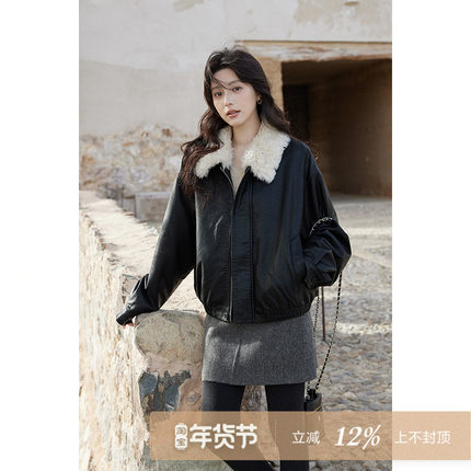 夕蒙2025新款冬季韩系酷炫风小个子夹棉独特小众保暖毛领皮衣外套