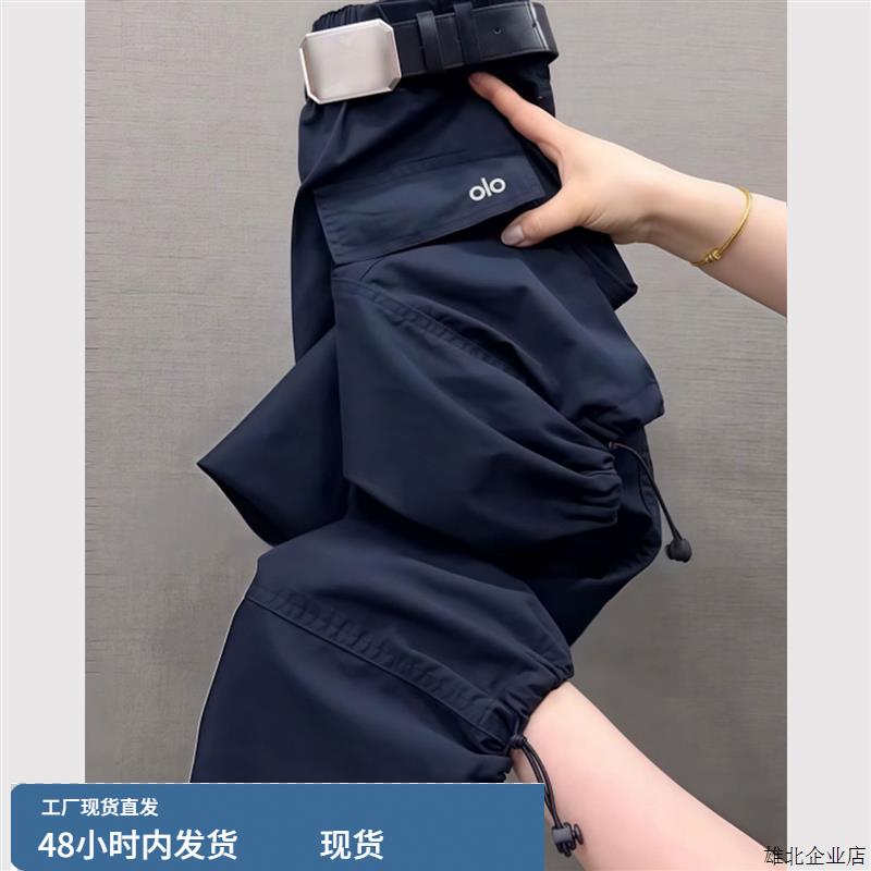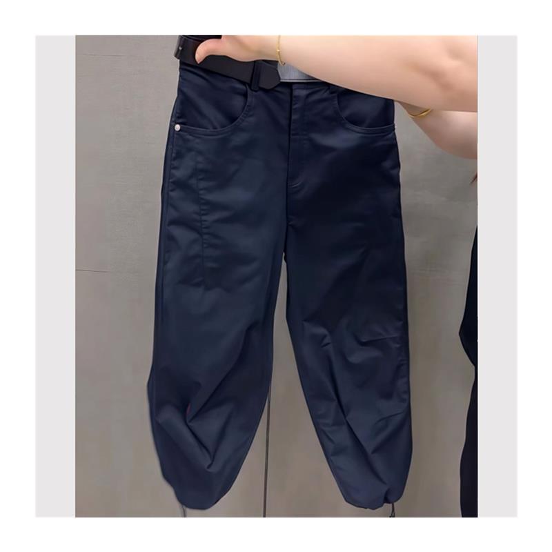 黑色休闲裤女2025秋季新款大码高腰宽松弯刀哈伦裤九分束脚工装裤