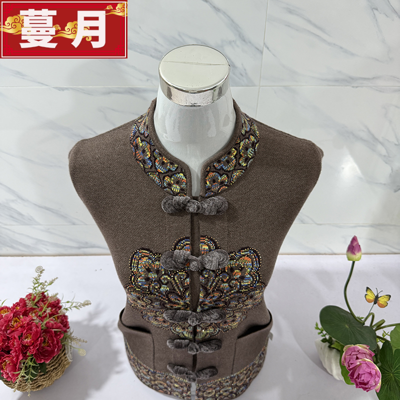 中老年人女士奶奶妈妈装秋冬季羊毛针织开衫盘扣毛衣加肥外套大码