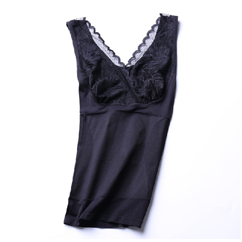 秋冬保暖内衣蕾丝V领收腹塑身背心上衣薄款束身托胸打底发热衣女
