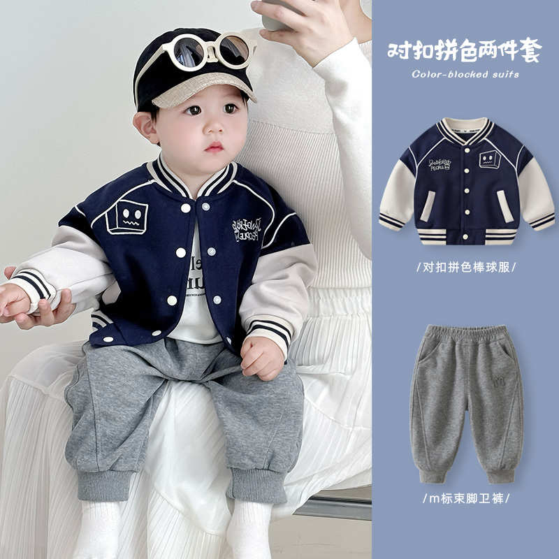 全棉纯棉婴儿秋装男宝宝棒球服外套男童分体两件套儿童套装夹克衣