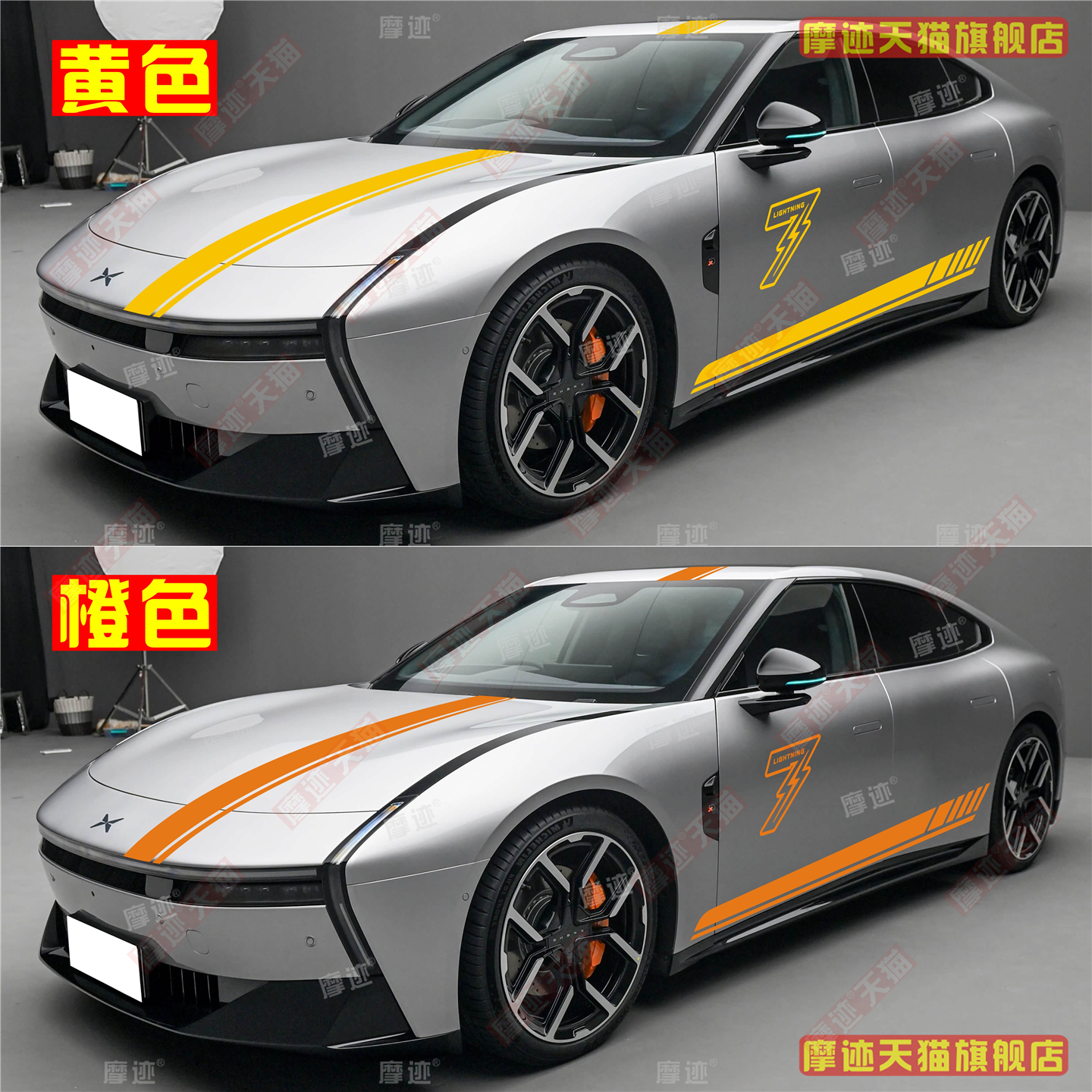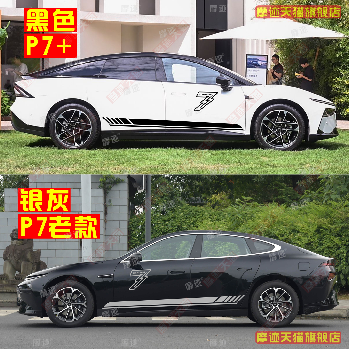 适用全新小鹏P7车贴拉花个性车身侧裙装饰贴纸 P7+引擎盖改装贴画