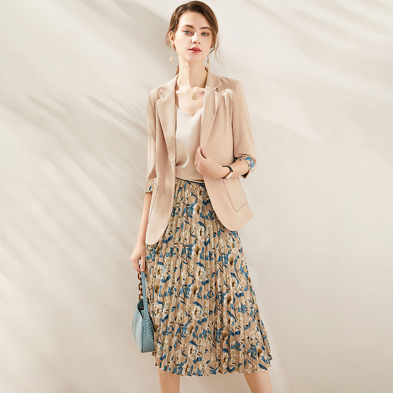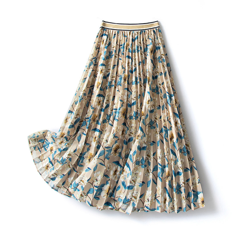高级感雪纺碎花百褶半身裙女2024年夏季新款高腰气质显瘦a字裙子
