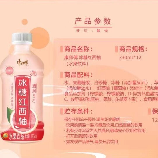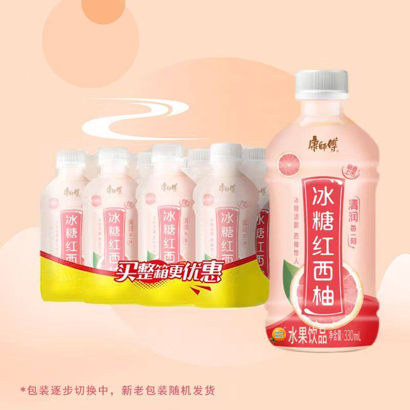 康师傅冰糖红西柚子茶饮料330ml小瓶整箱批发零食网红果汁饮品