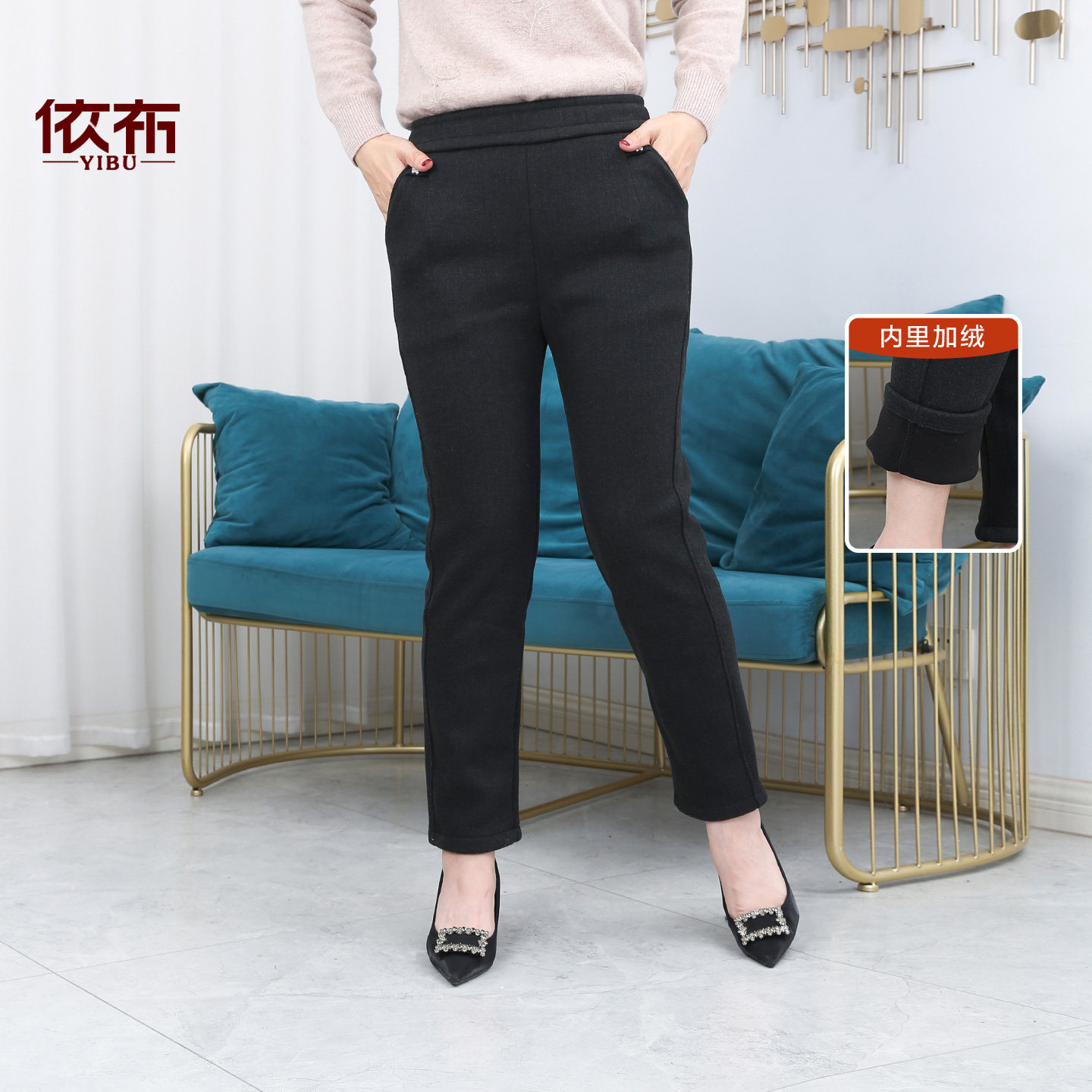 依佈中老年妈妈装2025冬装新款加绒休闲裤老年人大码松紧腰女裤子