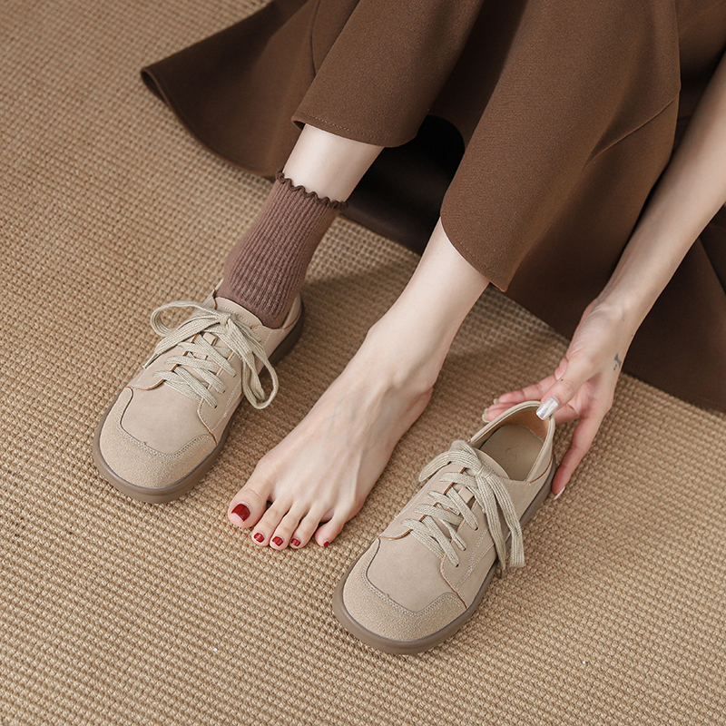 平底单鞋女2024新款秋冬复古英伦小皮鞋女配裙子软底系带乐福鞋女
