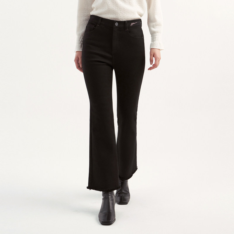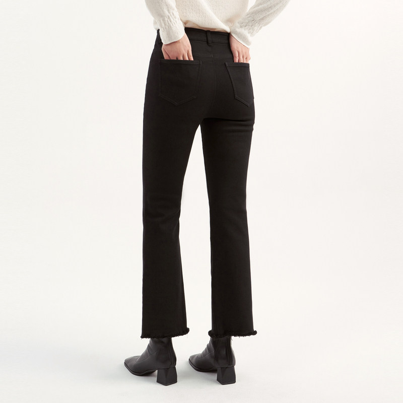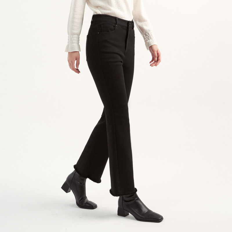 [专柜同款]Yifini/易菲黑色显瘦通勤抓绒微喇裤九分保暖牛仔裤女