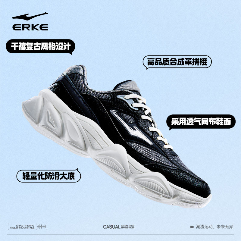 鸿星尔克东升男鞋休闲鞋春秋季厚底增高鞋网面透气运动鞋老爹鞋子