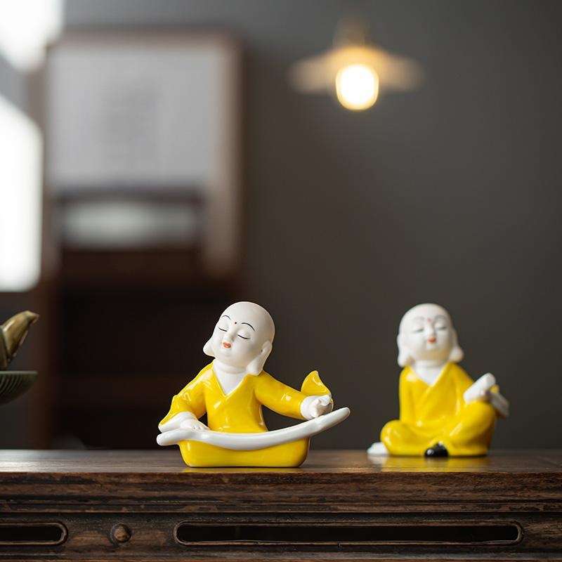 创意中式陶瓷小和尚琴棋书画茶桌茶台假山盆景鱼缸造景装饰品摆件