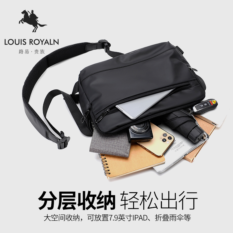 路易贵族新款两用多功能男士单肩手提斜挎背包时尚休闲防泼水包包