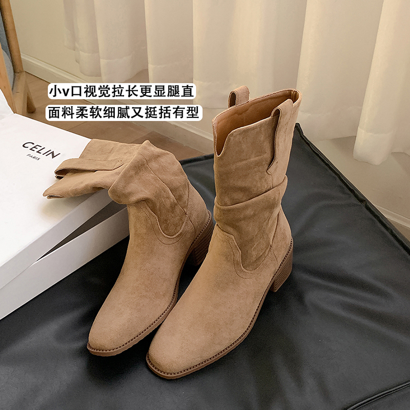 马丁靴女秋季真皮透气2025新款小个子内增高中筒短靴子高跟堆堆靴